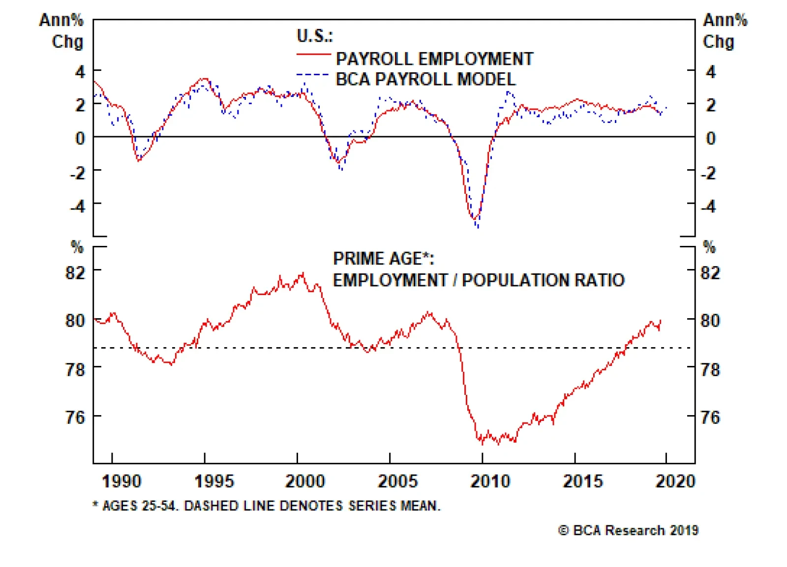 The Fed is caught in a loop of responding to inorganic shocks. It tightened policy in 2018 while nervously looking over its shoulder at a sizable injection of procyclical fiscal stimulus that wound up exerting less overheating pressure than it had feared. Now it finds itself uncomfortably drawn into the vortex of the trade war, cutting rates to keep the expansion from being snuffed out prematurely by self-inflicted wounds. Various Fed officials seem to be chafing under the burden of serving as a bulwark against the drag from the tariff fights. As Chair Powell admonished in his Jackson Hole address, “[M]onetary policy … cannot provide a settled rulebook for international trade.” Like it or not, the Fed is stuck cleaning up other policymakers’ messes. Jackson Hole would normally have brought down the curtain on any meaningful market news until after Labor Day. But Bill Dudley, the head of the New York Fed from 2009 to 2018, had other ideas. He argued in a Bloomberg opinion column that the Fed should refuse to abet foolhardy trade policy with rate cuts that offset its ill effects. He went on to posit that it is within the Fed’s remit to set policy with an eye toward influencing the outcome of the 2020 presidential election. Dudley’s grenade enlivened a slow news day and had the effect of unifying the economics community in condemnation of his polemic. The Fed swiftly distanced itself from the comments, reiterating that its “decisions are guided solely by its congressional mandate,” and that “political considerations play absolutely no role.” It is hard to know what Dr. Dudley intended to accomplish, but he ensured that we will be at BCA’s 40th Annual Investment Conference bright and early on Friday, September 27th when he kicks off its second day. Initial Estimates Soon after the 2017 Tax Cuts and Jobs Act was passed, the Congressional Budget Office (“CBO”) assessed how its provisions would affect the U.S. economy. Although calculating the components involves myriad complex estimates, the budget equation is quite simple: Budget Surplus/(Deficit) = Revenues – Outlays. Cutting taxes clearly reduces revenues, and the reductions in individual tax rates, partially offset by limits on deductions, were estimated to cost the federal government roughly $300 billion over the next decade. The 10-year tab for lower corporate rates, and immediate expensing of business investments through 2022, was estimated to run about $1 trillion. Relief from some spending constraints brought the total estimated cost to $1.7 trillion. A trillion here, and a trillion there, and pretty soon you’re talking real money. Though the Act was sure to worsen the deficit, it contained provisions meant to encourage investment and labor supply. Corporate tax cuts and the full immediate expensing of investments in software and eligible equipment were expected to permanently increase the nation’s capital stock, thereby boosting the trend pace of productivity growth. A reduced individual income tax burden was expected to encourage more people to enter the workforce and incumbents to work longer hours. Ultimately, the CBO projected that the Act would boost the level of real potential GDP by 0.7%, on average, through 2029. Six Quarters On It follows that people might work more if they are able to keep more of what they earn, but the data since individual income tax rates were reduced at the beginning of 2018 are inconclusive. The labor force participation rate has been treading water for several years (Chart 2, solid line), as it battles against the drag from baby boomer aging (Chart 2, dashed line). Prime-age labor force participation has risen very slowly off of its 2015 bottom, and has spent 2019 unwinding its gains from late last year (Chart 3). Average weekly hours worked remain locked in the narrow range that has prevailed since 2012 (Chart 4). Though it is difficult to isolate the drivers of participation gains, the part rate’s erratic 2018-9 course suggests that the Act has not yet had a discernible work force impact. Chart 2The Baby Boomers Have Become A Demographic Headwind