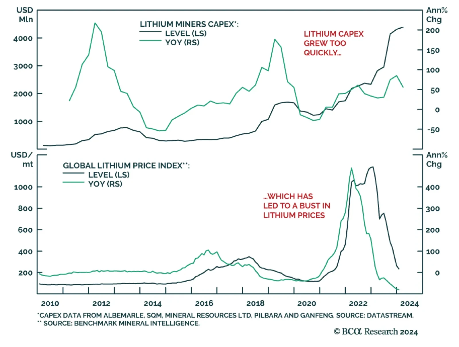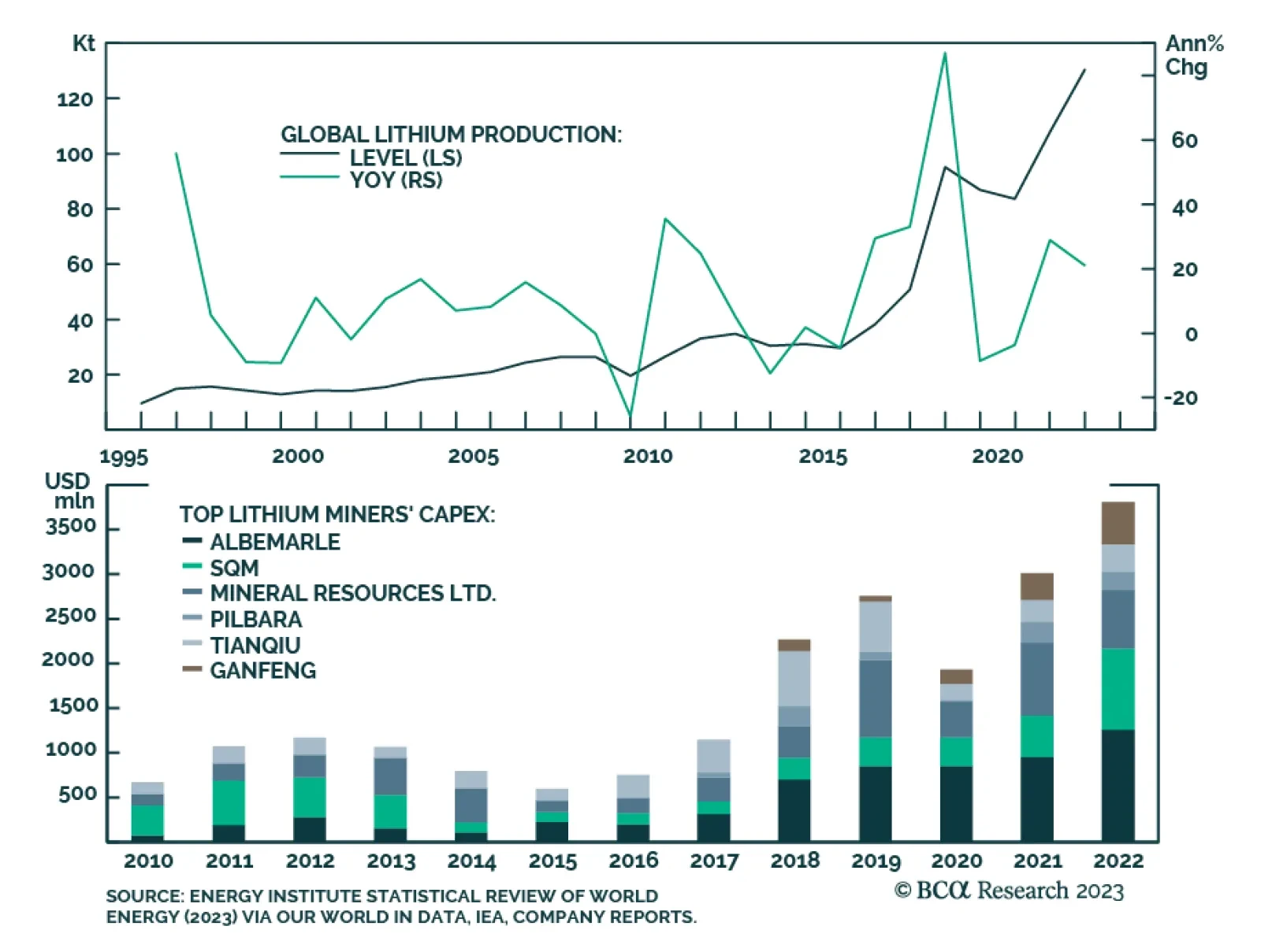 According to BCA Research’s Commodity & Energy Strategy service, after falling 80% over the past year, lithium prices will continue to trade lower. Lithium is critical for green technology and defense equipment,…