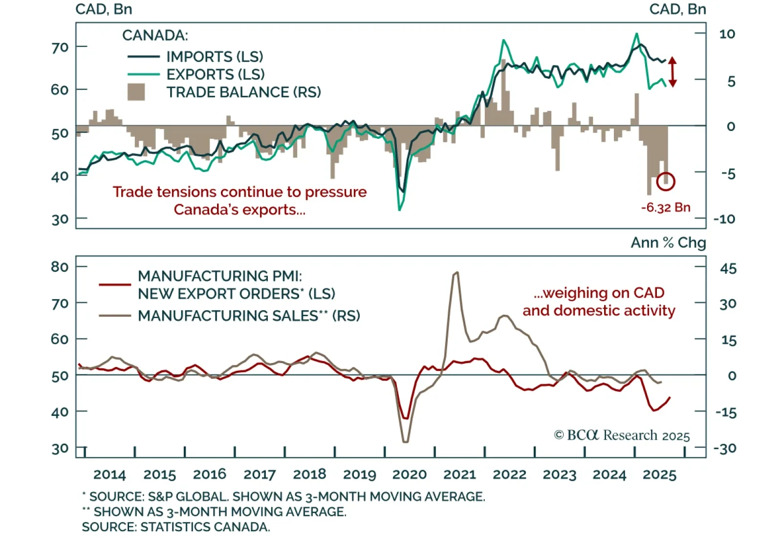 Trade concerns continue to weigh on Canada, reinforcing a cautious macro outlook with near term downside for bond yields and the CAD, though the currency selloff is getting stretched and could soon present an attractive entry point.…