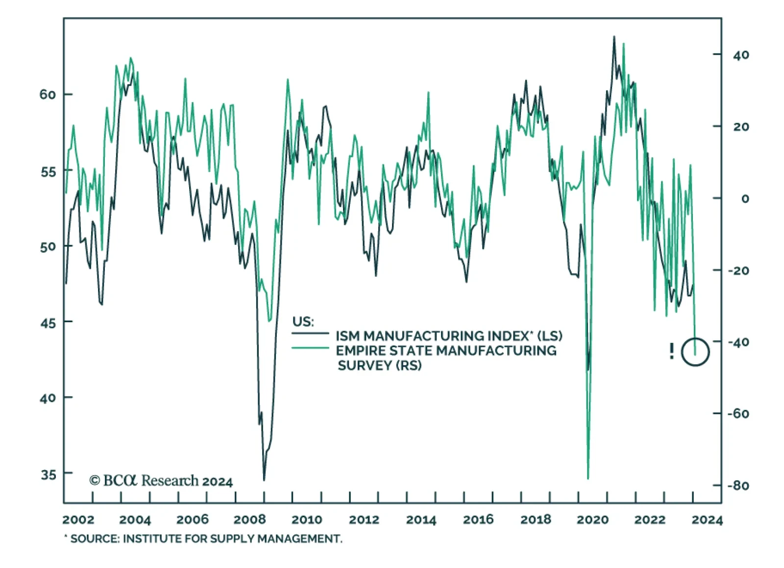 The New York Fed’s Empire State Survey delivered a somber signal about US manufacturing conditions. The headline general business conditions index plunged from -14.5 to -43.7 in December, disappointing expectations of an…
