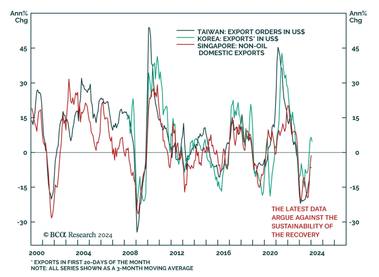 Some key Asian trade indicators are warning against betting on a sustained rebound in global trade activity. In particular, Taiwanese export orders collapsed by 16% y/y in December – significantly below expectations of a…