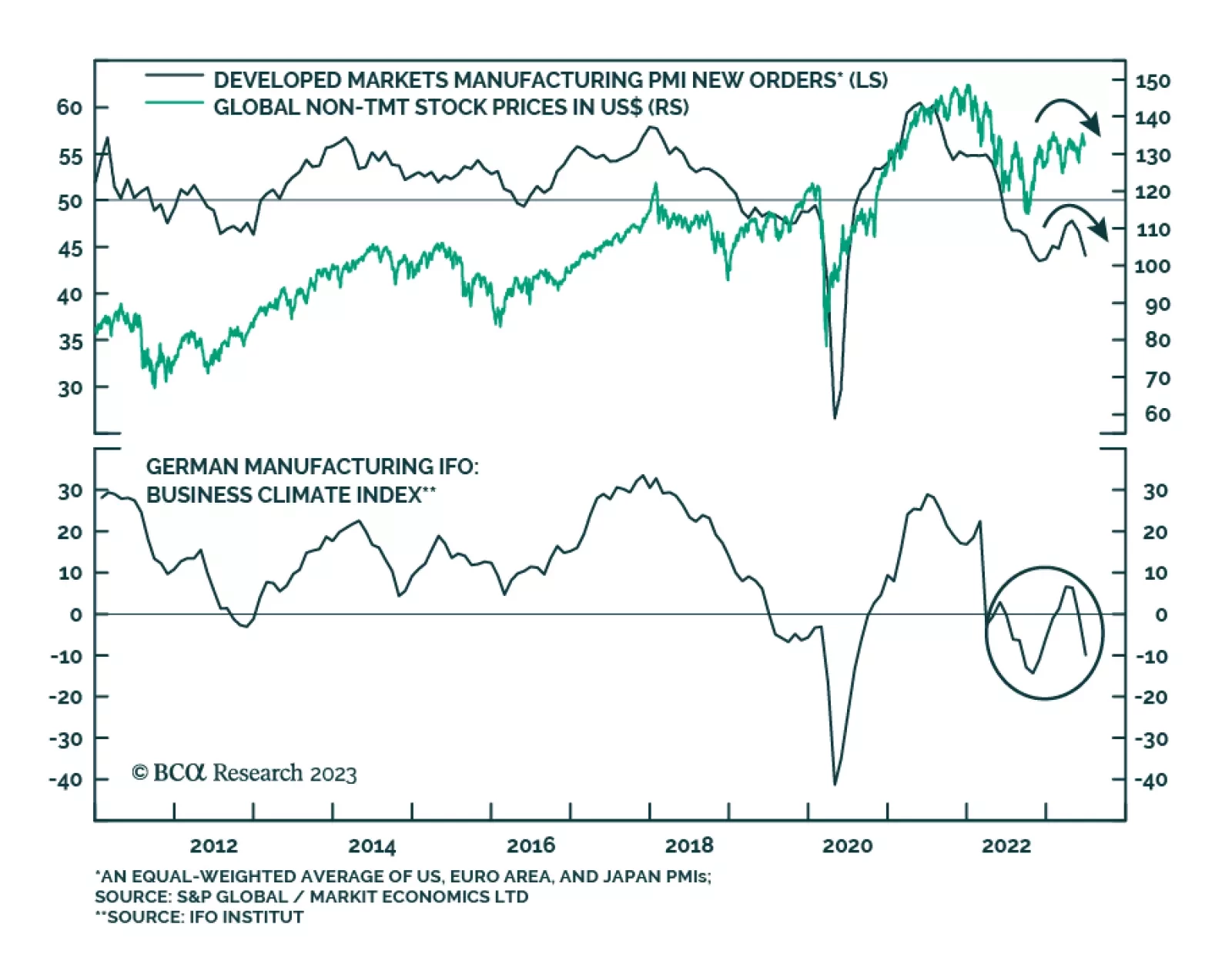 Global non-TMT stocks are at risk of a relapse given worsening conditions in global manufacturing and still hawkish policies from the Fed and ECB. According to the preliminary release, manufacturing PMI new orders for advanced…