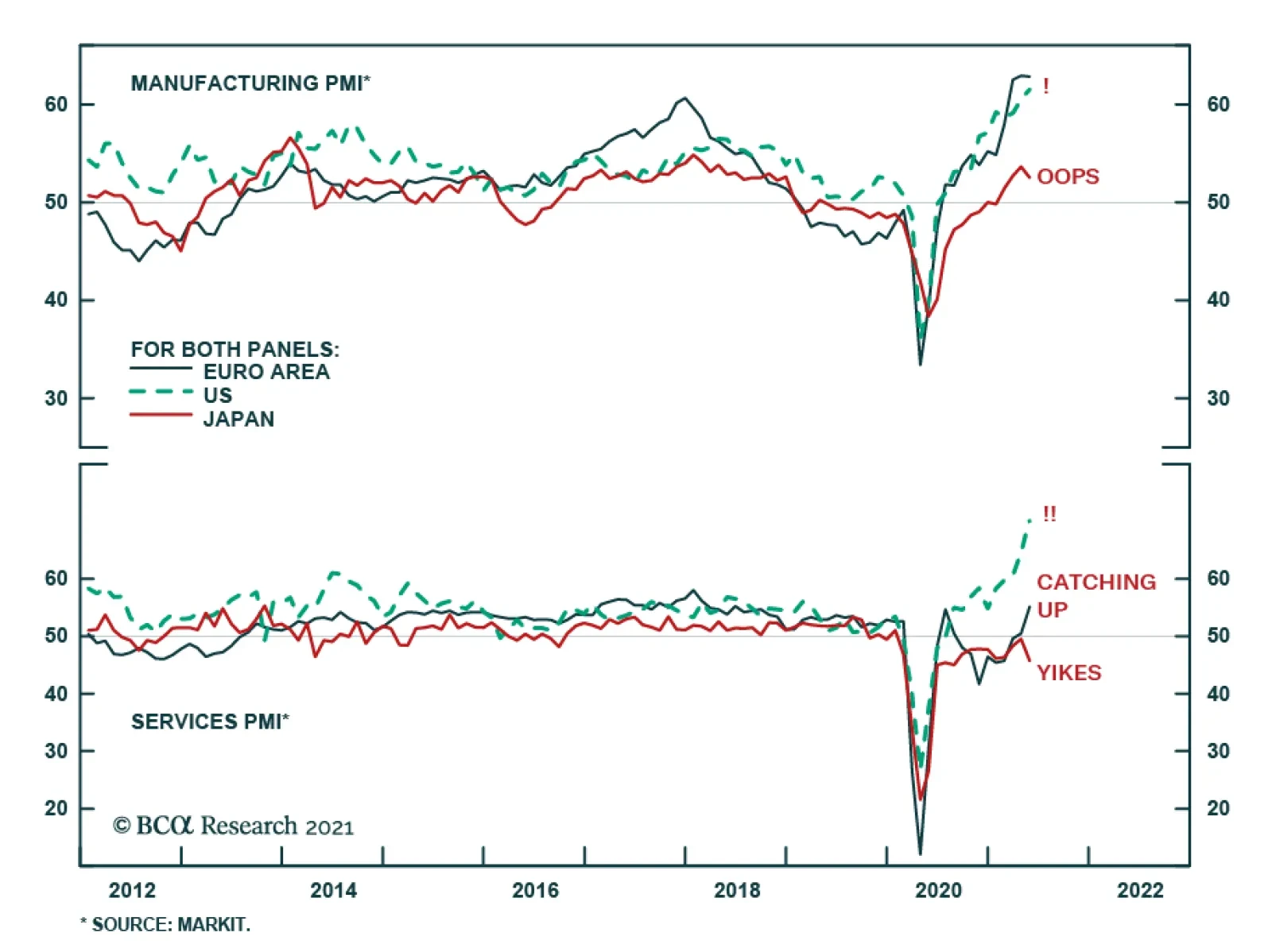 Flash PMIs surprised to the upside in May. The US composite PMI jumped to a record high of 68.1 from 63.5; the Eurozone composite index climbed 3.1 points to 56.9 and beat the consensus forecast of a tamer rise to 55.1; and the…
