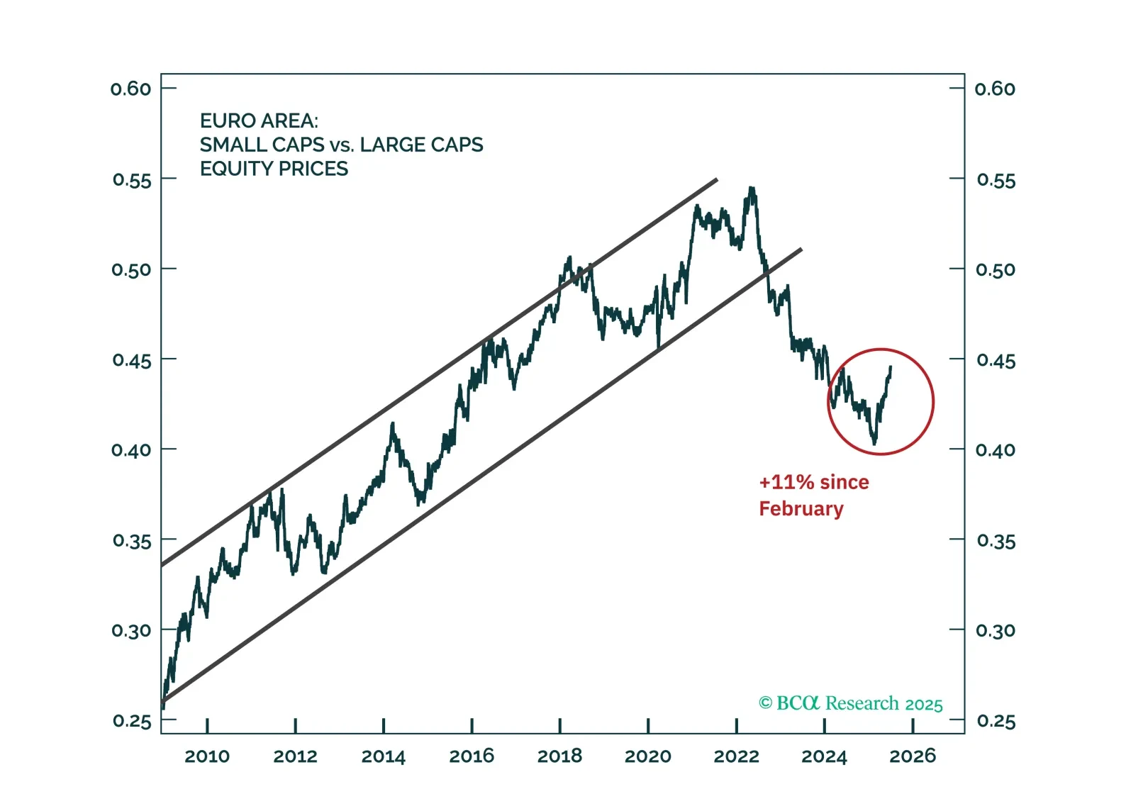 We upgrade European small caps to maximum overweight and double down on our existing recommendation to go long European small caps relative to US ones.
