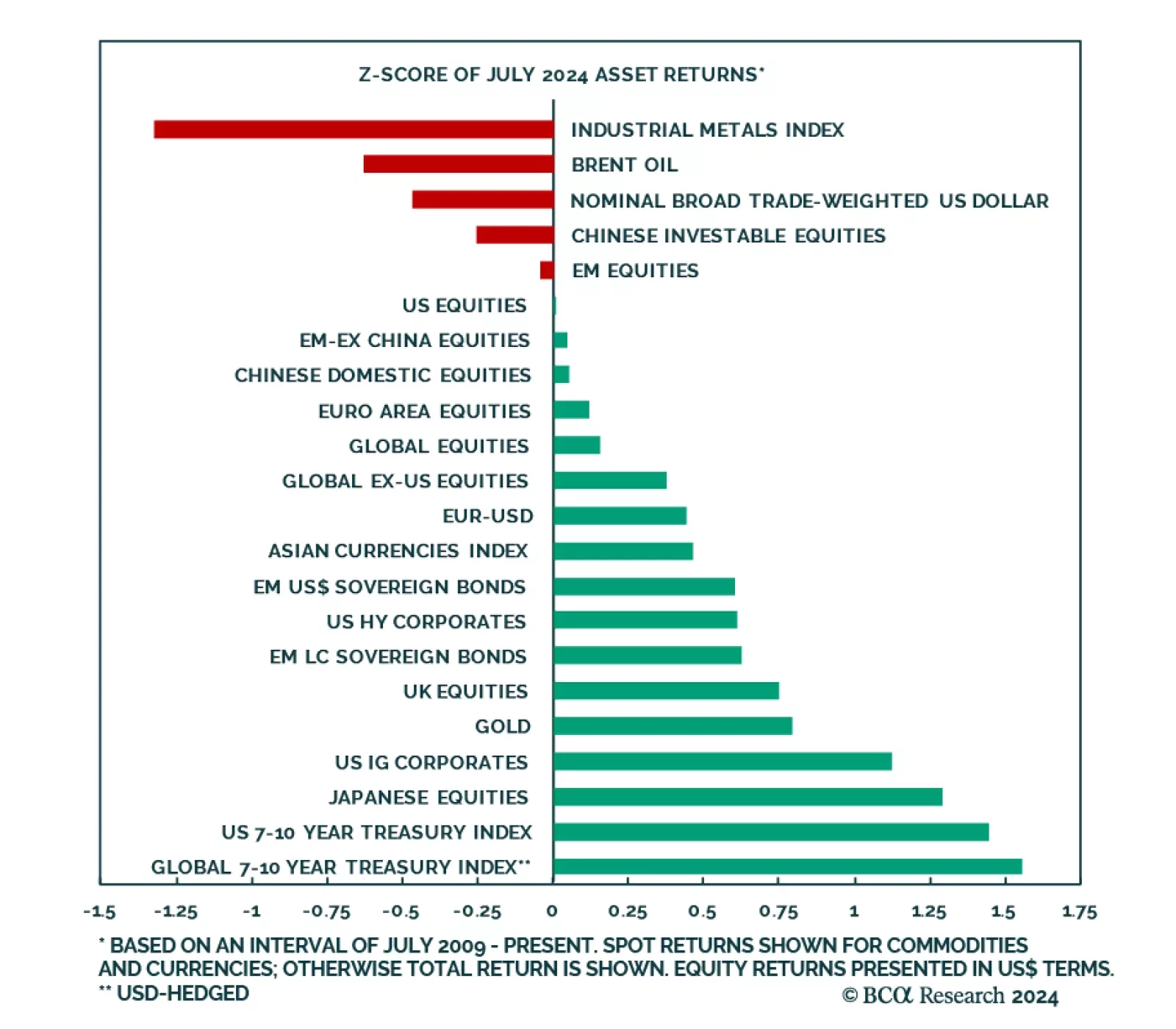 No clear risk-on/risk-off pattern emerged from July’s market performance data. On the one hand, consistent with a risk-off environment, US bonds ranked highest in the monthly return distribution, while pro-cyclical…