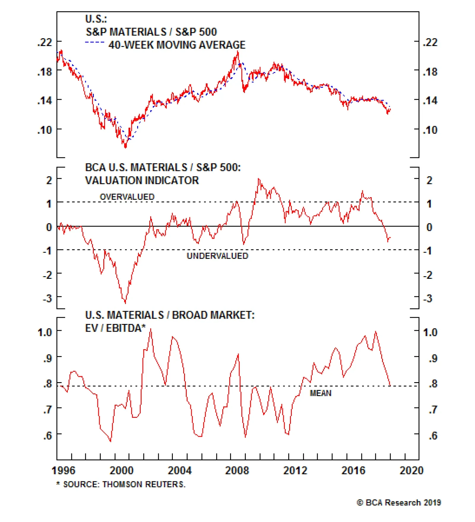 Netting it out, a marginally improving China monetary backdrop along with a de-escalation in the U.S./China trade tussle, recovering EM market internals and a brightening profit backdrop, all signal that a re-rating phase looms in the S&P materials sector. Bottom Line: Lift the S&P materials sector to a modest overweight position. Anastasios Avgeriou, Vice President U.S. Equity Strategy anastasios@bcaresearch.com Footnotes 1 Please see BCA U.S. Equity Strategy Weekly Report, “Will The Market Test Powell?” dated November 13, 2017, available at uses.bcaresearch.com. 2 Please see BCA U.S. Equity Strategy Weekly Report, “Manic Market” dated November 19, 2018, available at uses.bcaresearch.com. 3 Please see BCA U.S. Equity Strategy Weekly Report, “Signal Vs. Noise” dated December 17, 2018, available at uses.bcaresearch.com. 4 Please see BCA U.S. Equity Strategy Weekly Report, “Lifting SPX Target” dated April 30, 2018, available at uses.bcaresearch.com. 5 Ibid. Current Recommendations Current Trades Size And Style Views Favor value over growth Favor large over small caps