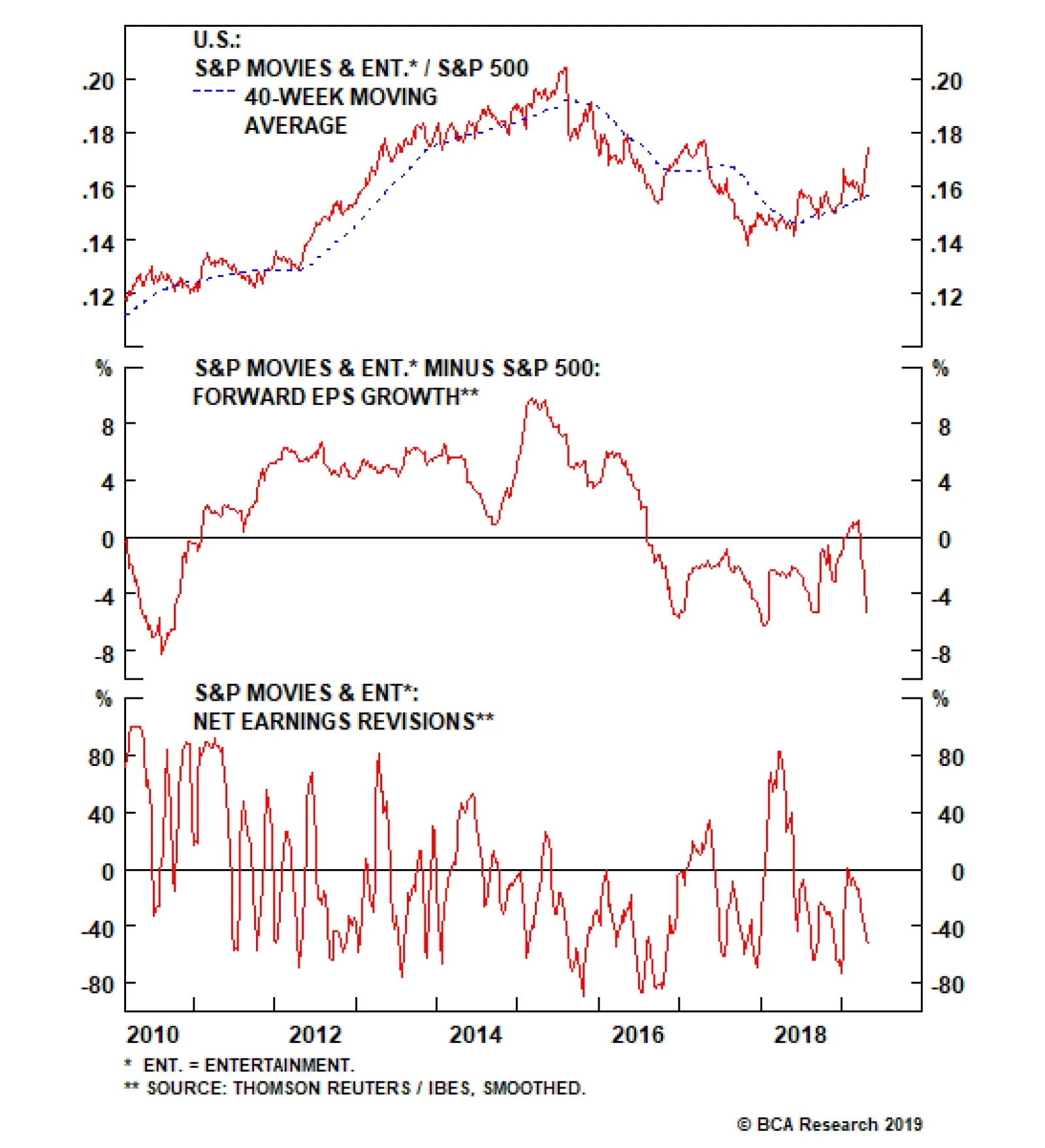 Overweight Last week we highlighted a number of reasons why the S&P movies & entertainment index had turned a corner, underscoring our upgrade to overweight.1 Core to our thesis is that content is king and Disney is…