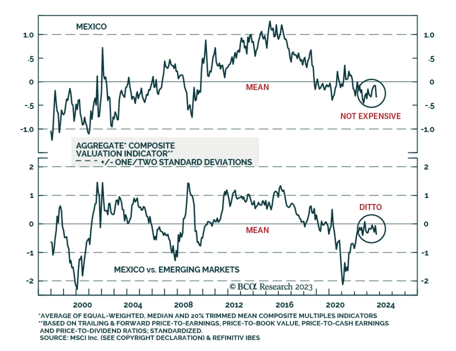 BCA Research’s Emerging Markets Strategy service remains overweight Mexican financial markets relative to their EM counterparts on a cyclical and structural basis. While Mexican markets will suffer in absolute terms with…