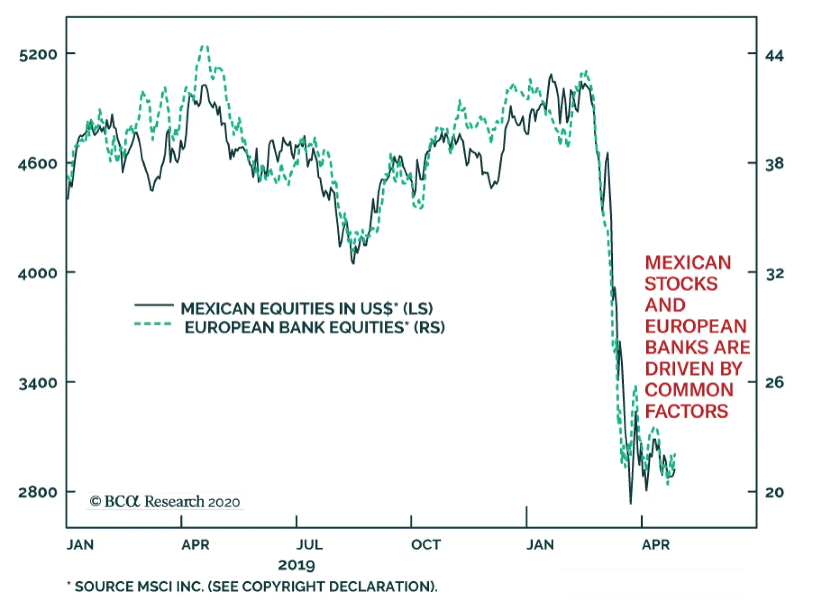 Mexican equities and European bank stocks have been trading in close tandem, indicating that common shocks are driving them both. For now, each of those markets continue to trade at very depressed levels. Funding stresses…