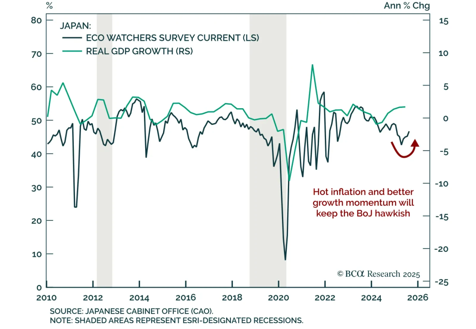 Japan’s Eco Watchers Survey points to stabilization; JGBs remain unattractive and the yen’s near-term setup is less favorable versus USD. The August survey modestly beat expectations, with the current component rising to 46.7…