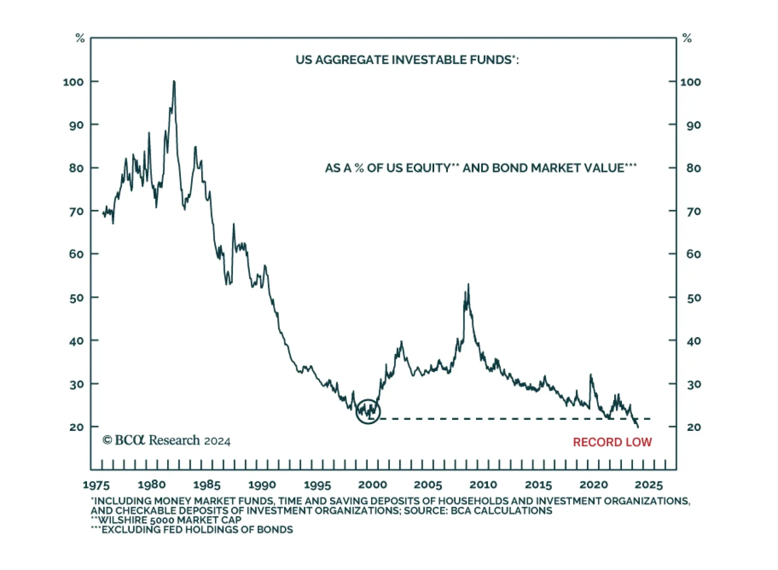 According to BCA Research’s Emerging Markets Strategy service, there is little firepower left to sustain the US equity rally much further. The ratio of aggregate investable funds of US households and investment…