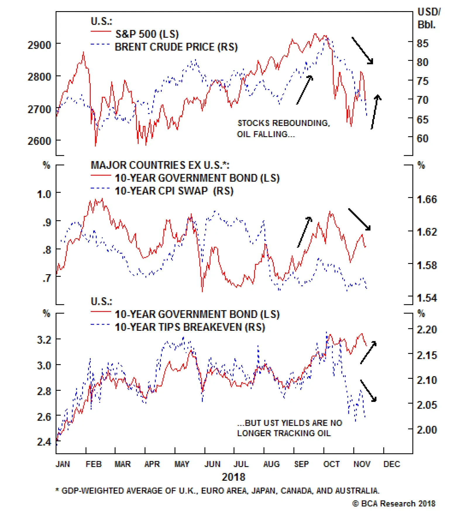 Highlights Falling Oil Prices & Bond Yields: Murky trends in global growth data, at a time of tight labor markets and gently rising inflation, are preventing a full recovery of risk assets after the October correction. A new…