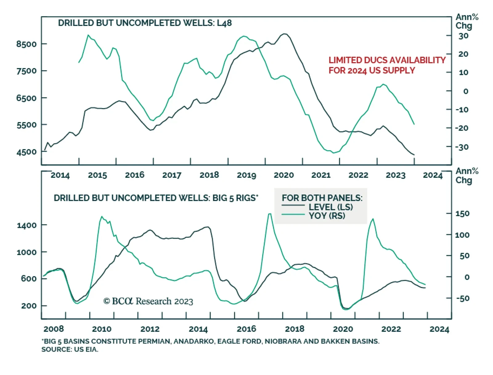 The 1mm b/d surge in US crude oil production last year was the result of a flood of low-cost drilled-but-uncompleted (DUCs) shale-oil wells coming online, mostly in 2H23 in the Permian Basin, which our colleagues in BCA's…