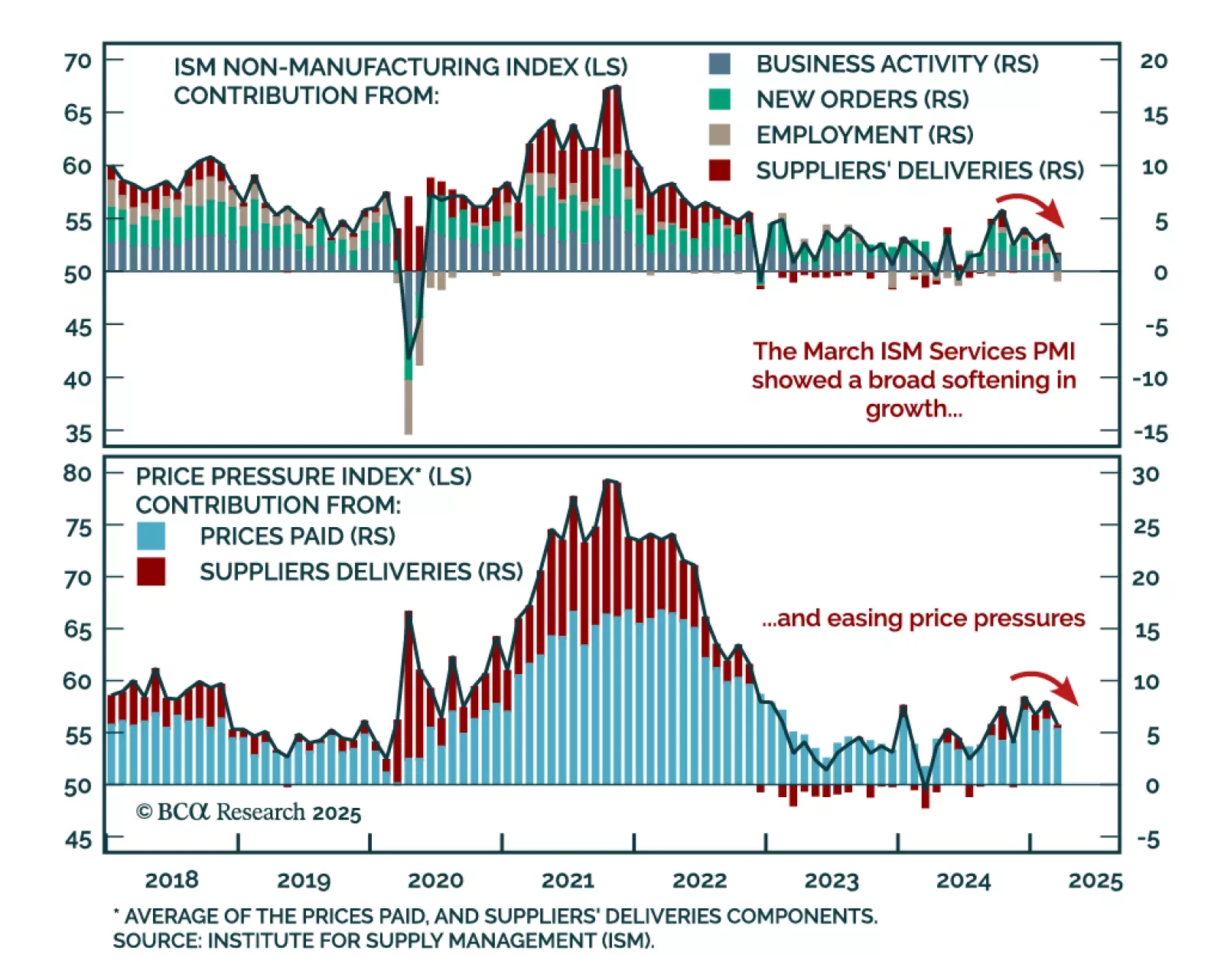 The March ISM Services report sent a recessionary signal, supporting our defensive positioning. The headline index fell sharply to 50.8 from 53.5, missing expectations. New orders dropped to 50.2, while employment collapsed to 46.2…