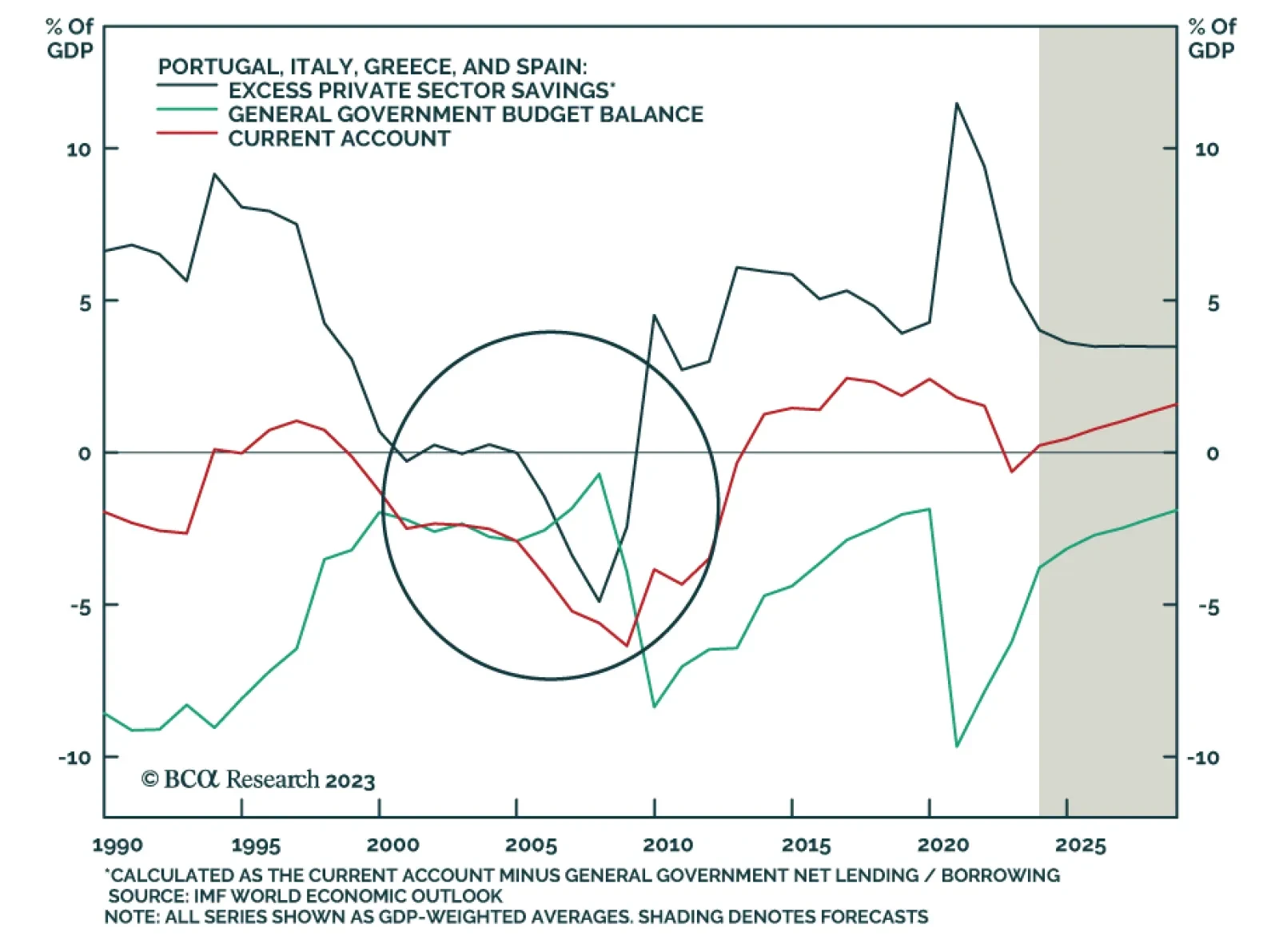 According to BCA Research’s European Investment Strategy service, the Mediterranean bloc’s move from current account deficit to current account surplus nations greatly limits the risk of a new sovereign debt crisis…