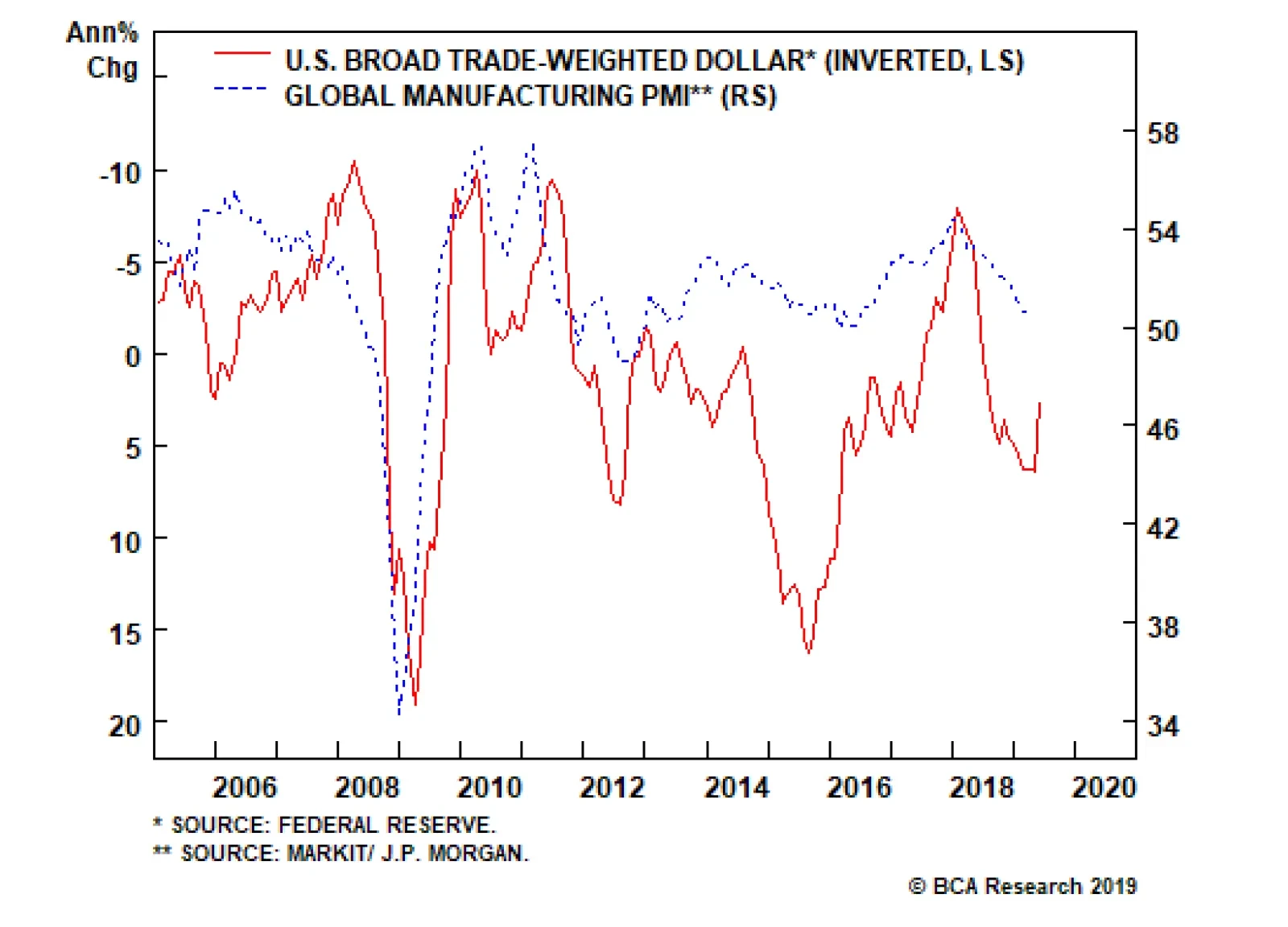 Investors expect the Fed to cut rates by 62 basis points by the end of next year. While rates could come down in the event of a major trade war, on a probability weighted-average basis, they are more likely to rise. The U.S.…