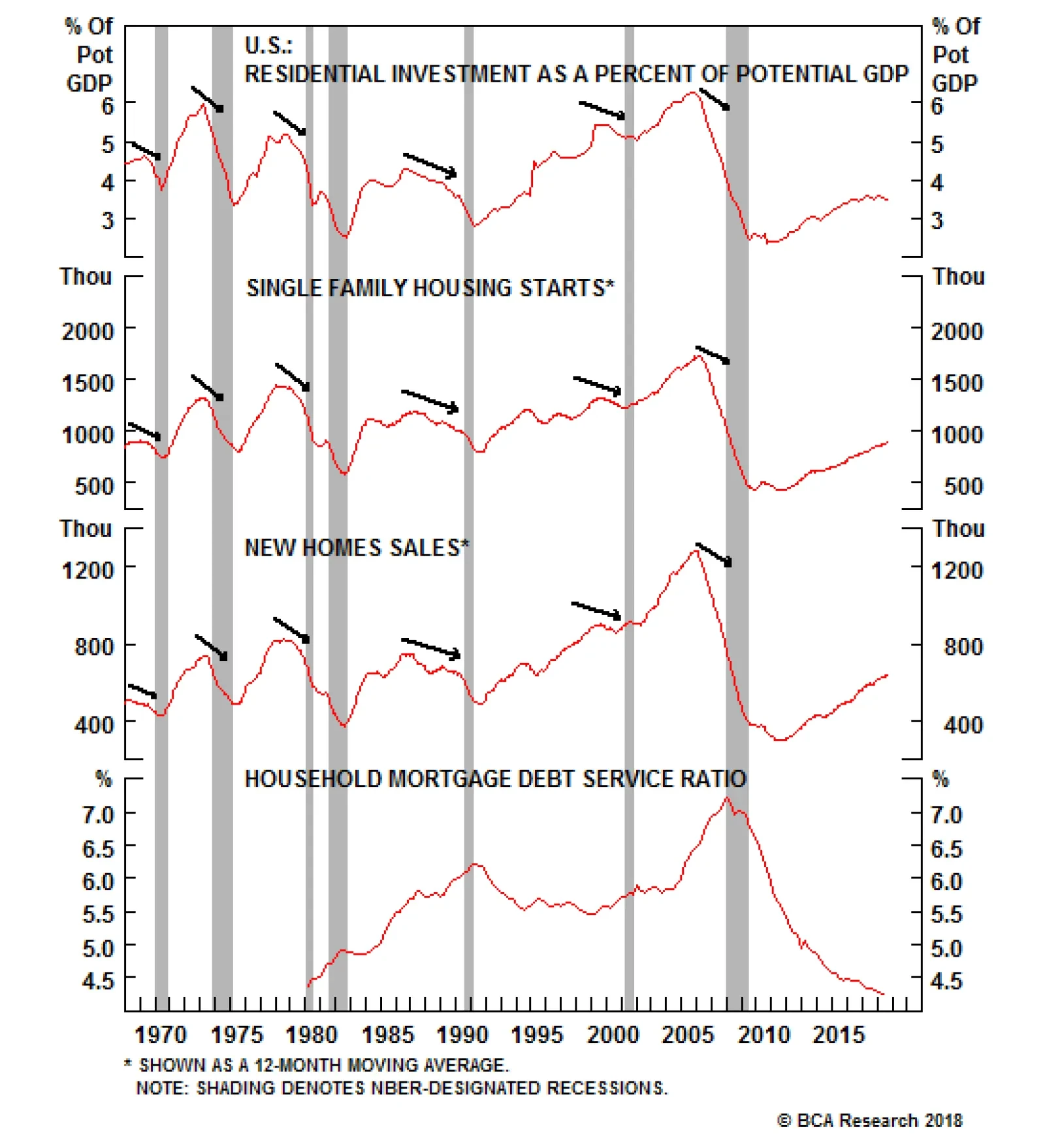 In talking through the bank exposure issue with a client, we arrived at a simple rule: property markets that haven’t already received their comeuppance are the property markets that threaten wealth, confidence and banking systems. The U.S. got its comeuppance in the crisis: property values plunged, loans went bad en masse, banks and specialty lenders failed, the survivors were chastened, and new regulations were put in place to protect the bankers from themselves and the economy from banks. As the Fed continues on its slow march to remove monetary accommodation, it is entirely reasonable for a macro-minded investor to be on the lookout for wobbly property markets. S/he would be best served by studying the rest of the dollar bloc: Canada, Australia and New Zealand are all vulnerable; the United States is not. Q: The Kansas City market is bifurcated by price. Supply is constrained at lower price points, although the formerly red-hot move-up segment has slowed considerably since mortgage rates spiked. High-end homes are being discounted sharply, and the baby boomers’ 4,000-6,000-square-foot suburban behemoths, untouched since the ‘80s, cost as much as brand-new high-end construction once you factor in the work they’d need to make them appeal to today’s buyers. Meanwhile, the limited supply of homes for first-time buyers has multi-family apartments popping up on every block. A market based on location, location, location is inherently heterogeneous, but a lot of what is happening in Kansas City appears to be playing out nationally. The rapid rise in mortgage rates has dented demand across the board. We’ve been hearing rumblings about easy multi-family credit for a while, most memorably from a Texas client who told us in 2014 that a blueprint was all it took for an apartment developer to get a bank loan. There is no investment idea so good that it can’t be destroyed by too much capital, and it’s entirely possible that some developers, commercial real estate lenders, commercial mortgage-backed securities holders and apartment REITs could be vulnerable if entry-level supply surges. There is no sign right now that it will, however. According to the Harvard Joint Center for Housing Studies, “virtually all” of the nation’s metropolitan areas “had more homes for sale in the top third of the market by price than in the bottom third.” A limited supply of available land and rising construction costs push developers to migrate to higher price points. The trend toward more expensive homes has been in place across the entire 30-year history of the Harvard center’s annual survey: the share of smaller homes (1,800 square feet or less) has slid from 50 percent in 1988 to 36 percent in 2000 and 22 percent in 2017.1 The fate of the boomers’ homes touches on what may be the most compelling long-term issue: to whom will the baby boomers pass the baton? Will the millennials accumulate enough wealth to be able to take it? Will they want to, after living through the formative experience of the financial crisis? Will suburban and exurban homes go vacant as preferences shift to the density and walkability of town and city centers? Are wide swaths of the existing housing stock destined for obsolescence? We are not inclined to think so. Even if homeownership is suppressed by a lessened desire to own, or delays in starting a career in the wake of the crisis, millennials and their families will still need a roof over their heads. We expect that purchase and rental prices will correct for changes in location and decorating preferences; homebuyers will put up with dark cabinets, loud tile patterns and wall-to-wall shag carpeting if the price is right. Lower prices might be what’s needed to help solve a potentially thorny problem raised by a client in the antipodes: the transfer of wealth across generations. He sees barriers to homeownership for the middle class as a social and political powder keg. A transfer of wealth from older generations to younger generations, accomplished by property markdowns instead of punitive income and property taxes, could be far less disruptive for markets and may even help to ease inequality strains. Furthermore, buyers who get a deal on a property have more money available for other consumption, while those who pay up retain less dry powder to help keep the economy humming. Investment Implications Investors are well served to be alert for excesses that cannot be sustained, and it is a near certainty that a 10-year expansion nourished on extreme monetary accommodation would have bred more than a few. From our perspective, however, all of the worst ones exist beyond the borders of the United States. Virtually all of the post-crisis increase in private-sector leverage has been contained in the emerging markets. The wild residential party has been raging in the developed world’s other former British colonies: Canada, Australia and New Zealand face inevitably sharp declines in construction activity and home prices. We are neither congenital Pollyannas nor market cheerleaders. We are bent on sniffing out market and economic inflection points as adroitly as possible, but we’re convinced that investors who are looking for them in U.S. housing are barking up the wrong tree. The Fed is moving steadily toward inducing an inflection point, but it is not yet upon us, and when it arrives, the attendant distress is not going to be centered on the United States, which already underwent its trial by fire ten years ago. We remain vigilant, but we are constructive on the U.S. economy and risk assets, especially in relation to the rest of the world. Doug Peta, Senior Vice President U.S. Investment Strategy dougp@bcaresearch.com Footnotes 1The State of the Nation’s Housing 2018, Joint Center for Housing Studies of Harvard University, p.6.