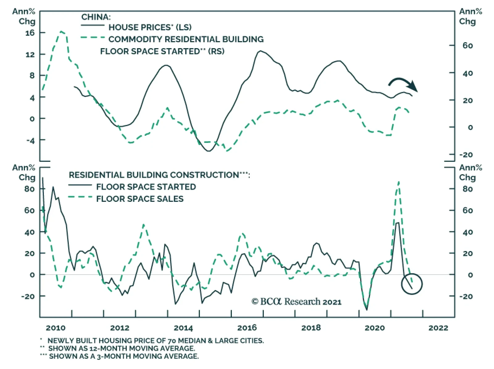 Chinese residential building starts and sales have been contracting since April and July, respectively. Similarly, the level of aggregate building construction activity appears to be rolling over. The Evergrande debacle presents…