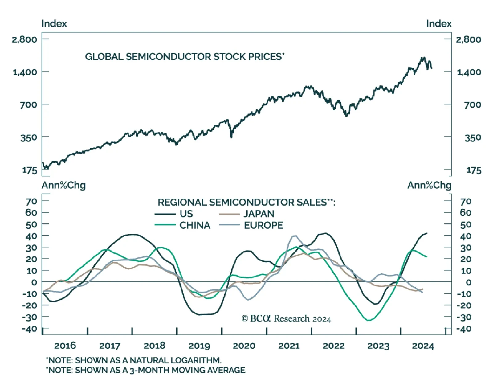 Global semiconductor stocks have returned 50% YTD in USD terms, and a whopping 200% since their September 2022 lows. However, they may have peaked back in July. Our Emerging Market strategists highlight a significant…