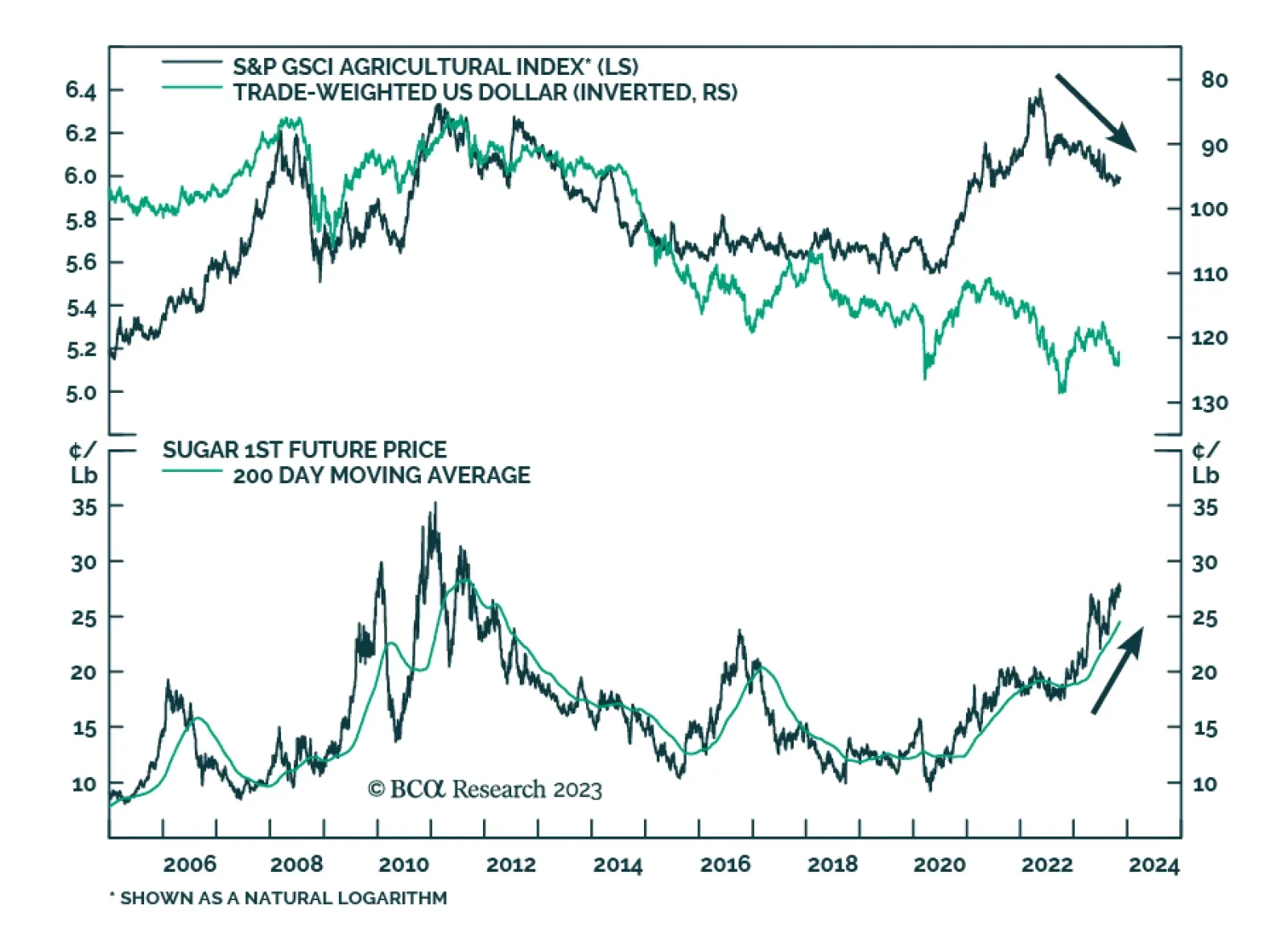 Agriculture commodity prices have been on a steady decline for over a year. Since peaking in mid-May 2022, the GSCI Agriculture index has dropped by 34% -- nearly half of which occurred in 2023. The weakness is generally broad-…