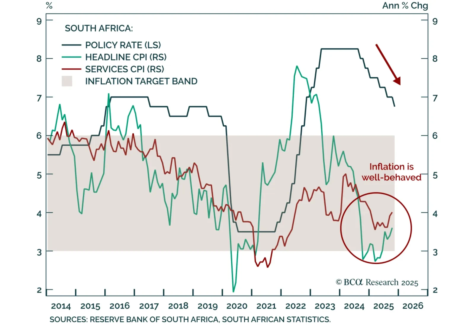 The South African Reserve Bank cut rates by 25 bps to 6.75%, with more easing expected as growth slows and inflation stays contained. The move aligns with our Emerging Markets strategists’ view that borrowing costs remain too…
