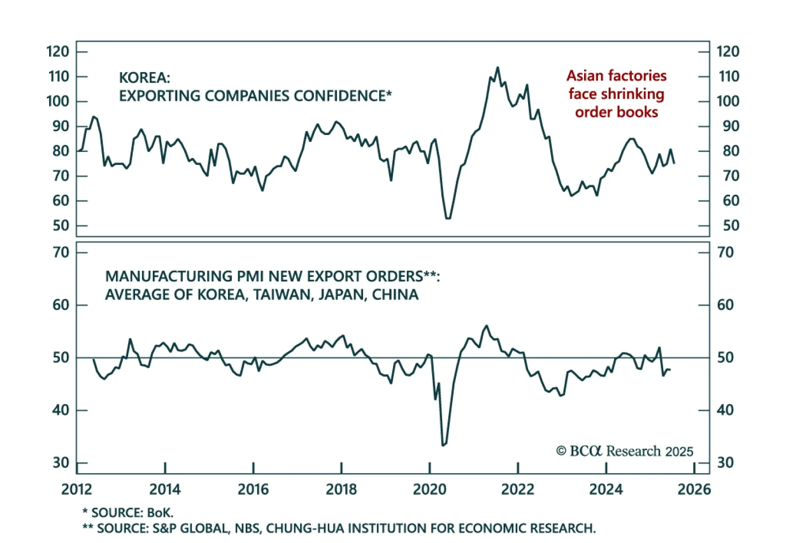 A deflationary shock from shrinking exports will ripple throughout the Korean economy. We are downgrading the KOSPI from overweight to neutral and reiterating a long position in 10-year domestic bonds, currency unhedged.