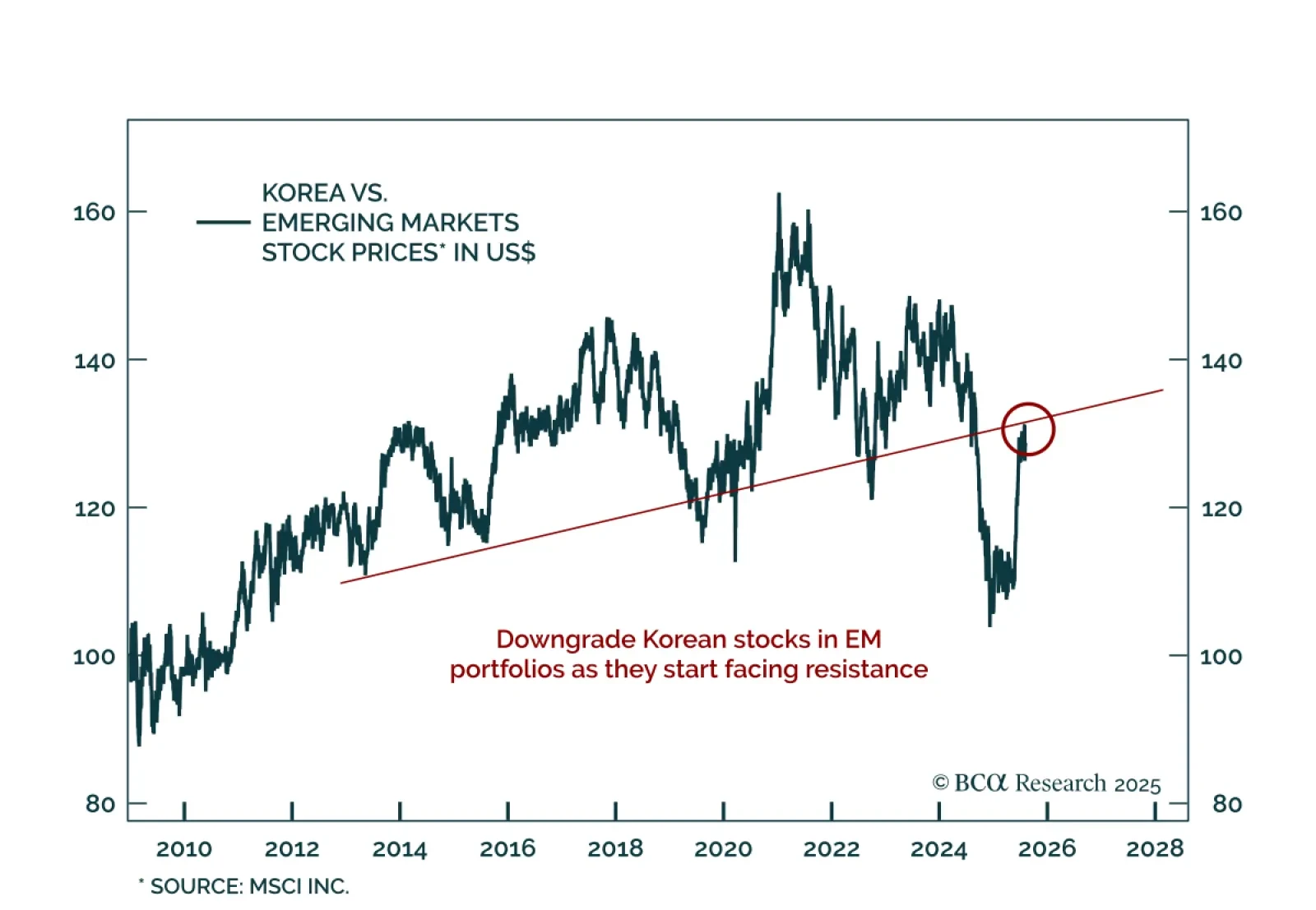 Our Emerging Markets strategists recommend downgrading Korean equities from overweight to neutral and staying long 10-year Korean bonds, currency unhedged. A deflationary shock from shrinking exports will ripple through the Korean…