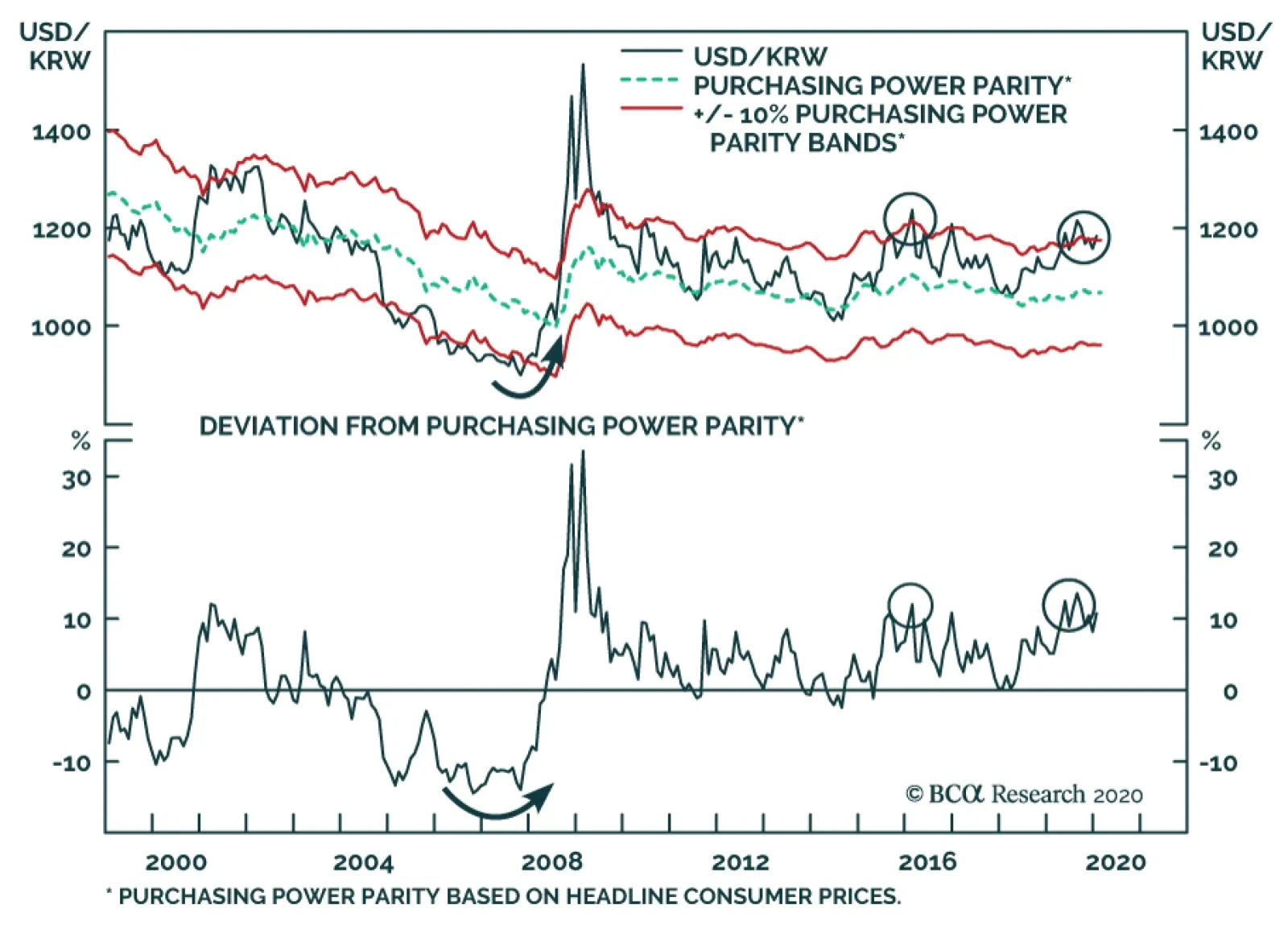 The USD/KRW is trading at a nearly 10% premium to its Purchasing Power Parity equilibrium. Historically, when investors exchange the won at such a discount, they often benefit from FX appreciation in addition to the yield. We do…