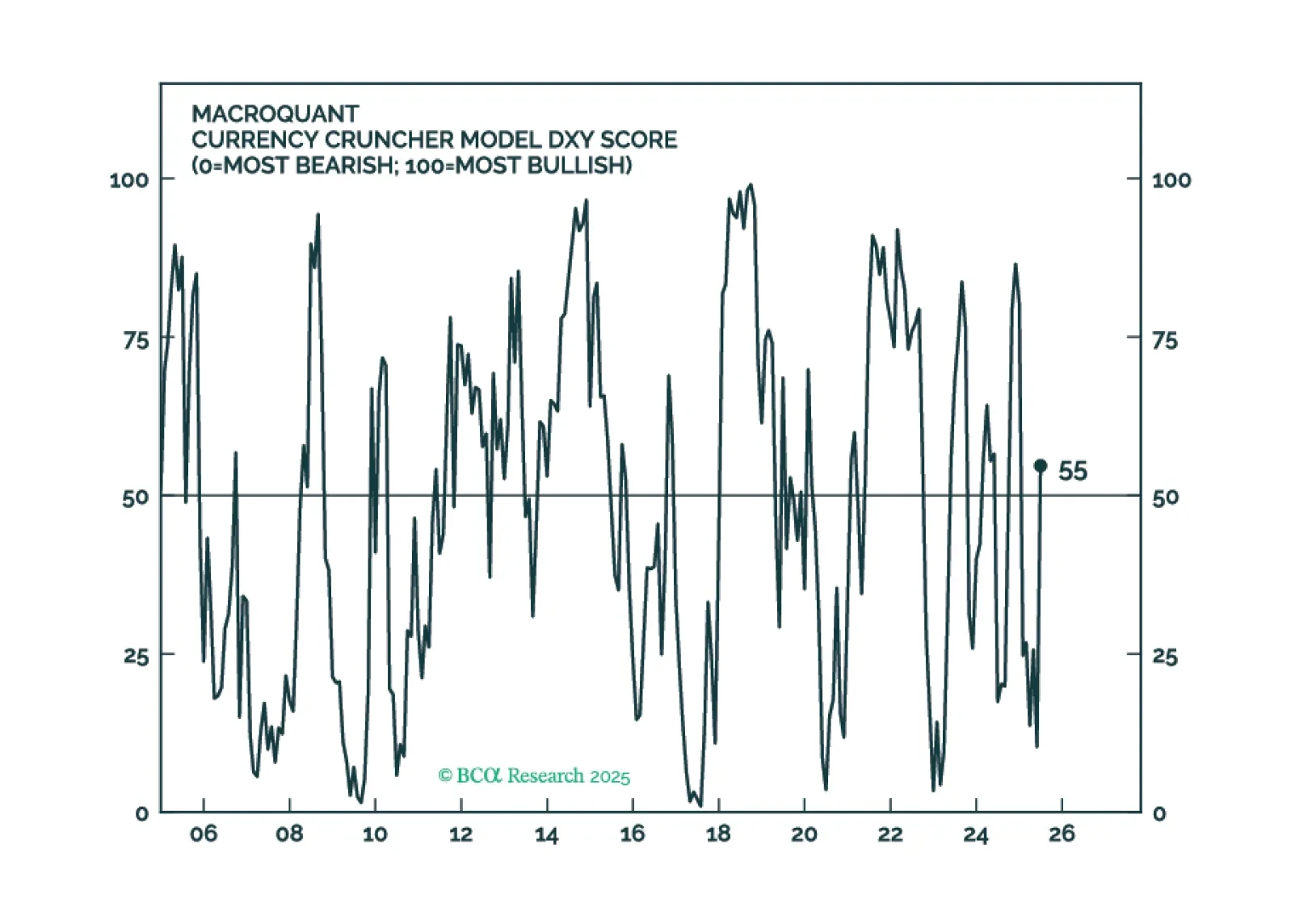 MacroQuant is tactically overweight equities, favors an above-benchmark duration stance in fixed-income portfolios, remains bearish on the US dollar, and is bullish on gold and copper.