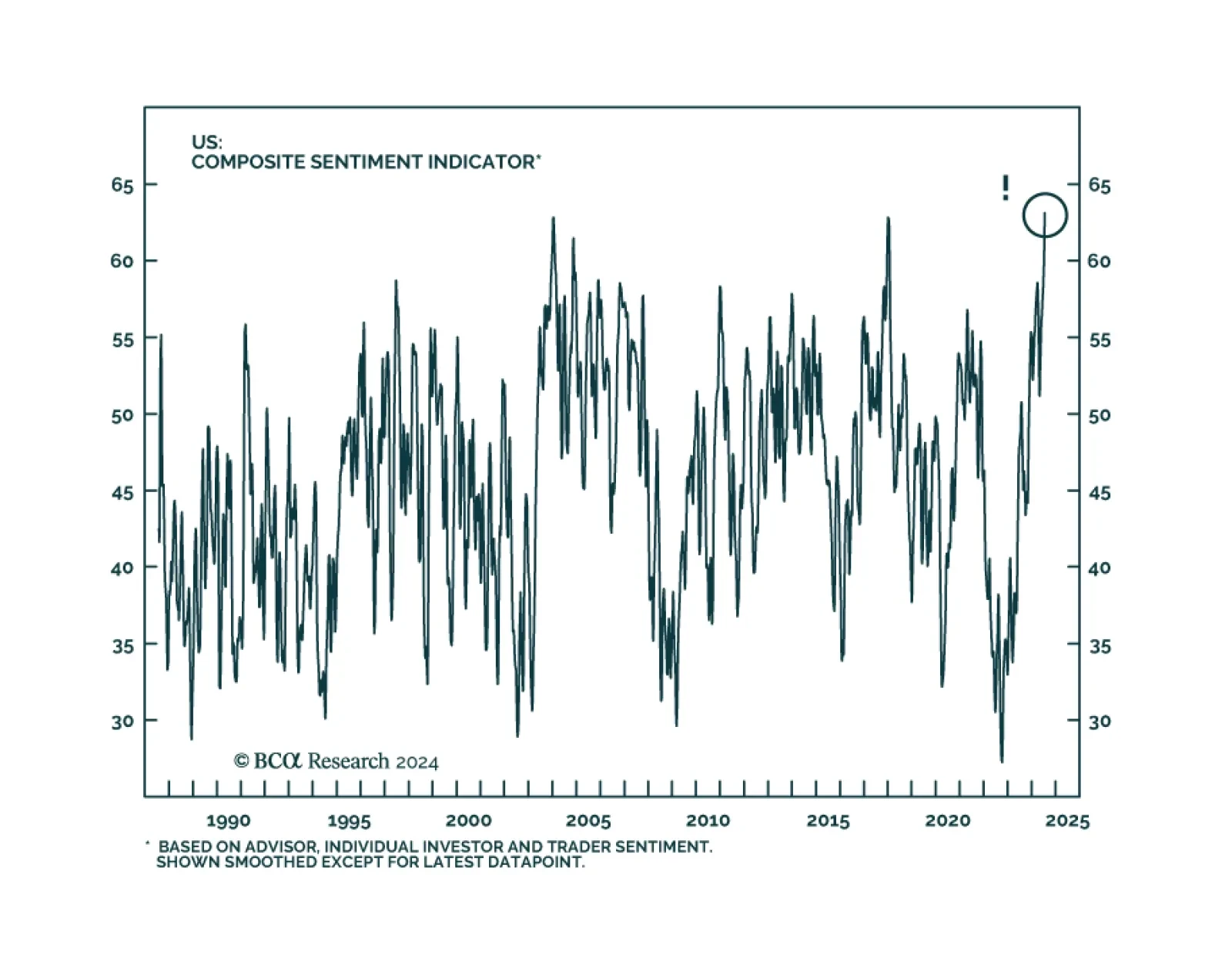 BCA’s composite sentiment indicator, compiled from surveys of advisors, individual investors and traders, surged over the past three months from already very optimistic levels. It reached 63% last week, a six-and-half-year…