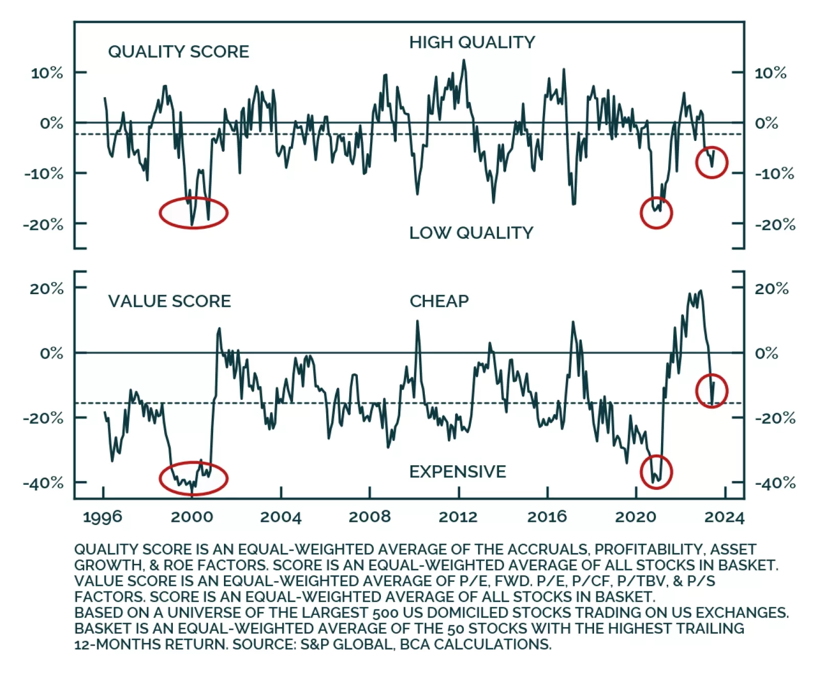 This chart breaks down the factor exposure of the top performers in the US large cap space relative to the largest 500 stocks in the US to see how the current market leaders compare to history relative to their peers. The values…