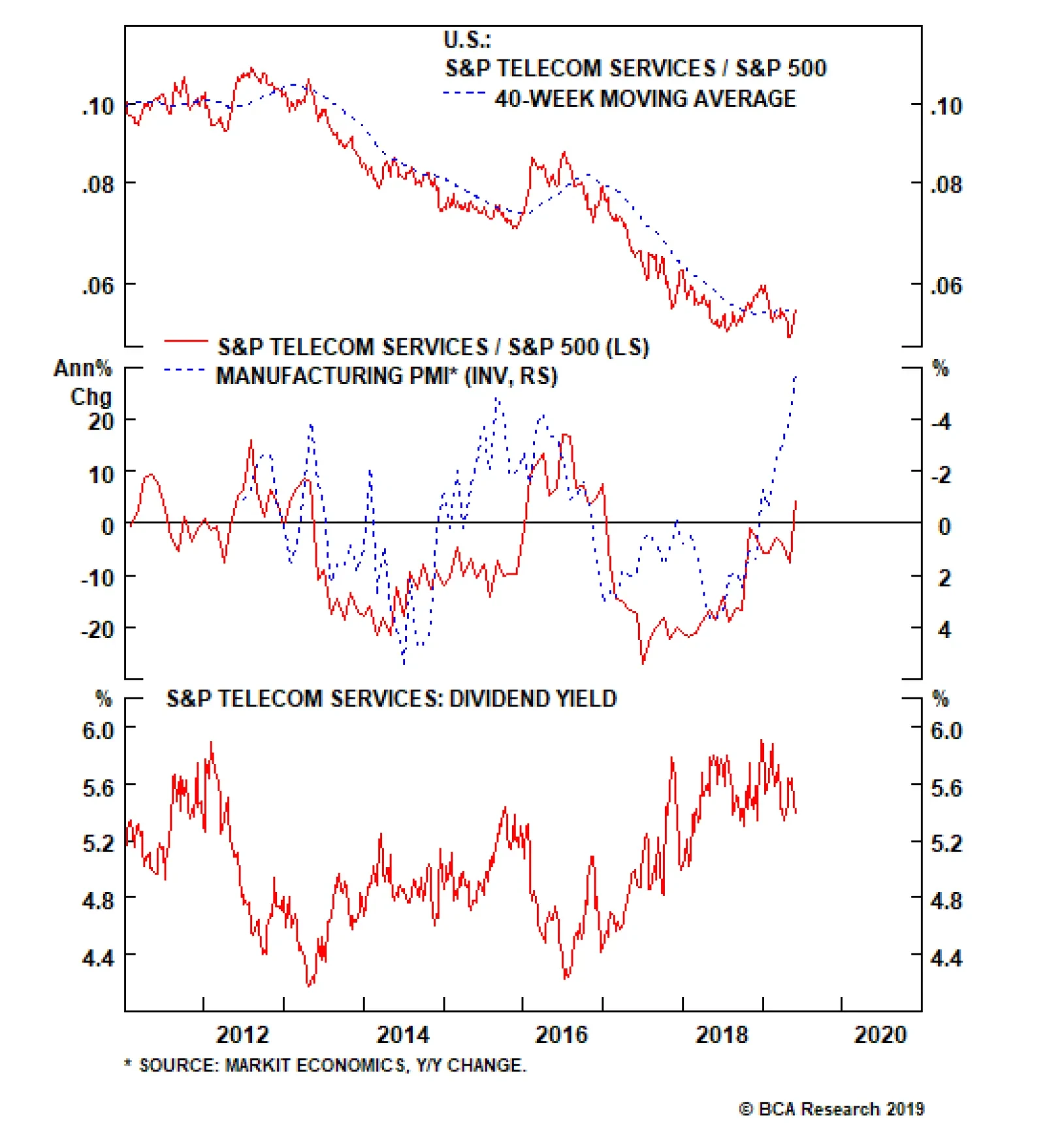 Neutral On Tuesday, we monetized gains of 6% in the S&P telecom services index. Gathering macro headwinds bode well for safe haven assets and it no longer pays to underweight high yielding telecom carriers. Specifically…
