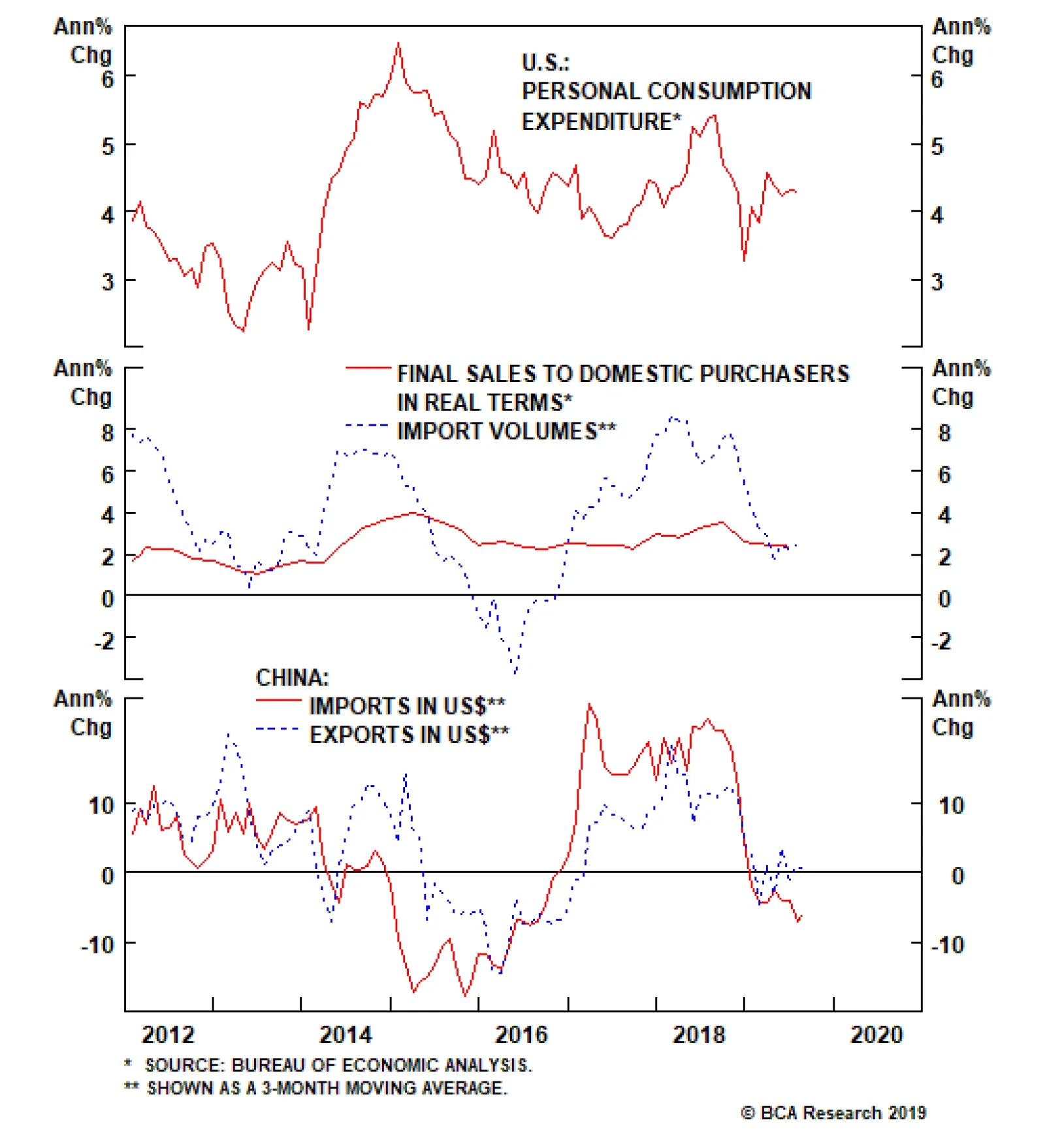 The trade confrontation has not derailed U.S. household spending as it is still robust. Because they slowed but did not contract, U.S. imports have been a mild positive rather than a negative for global trades. In addition,…