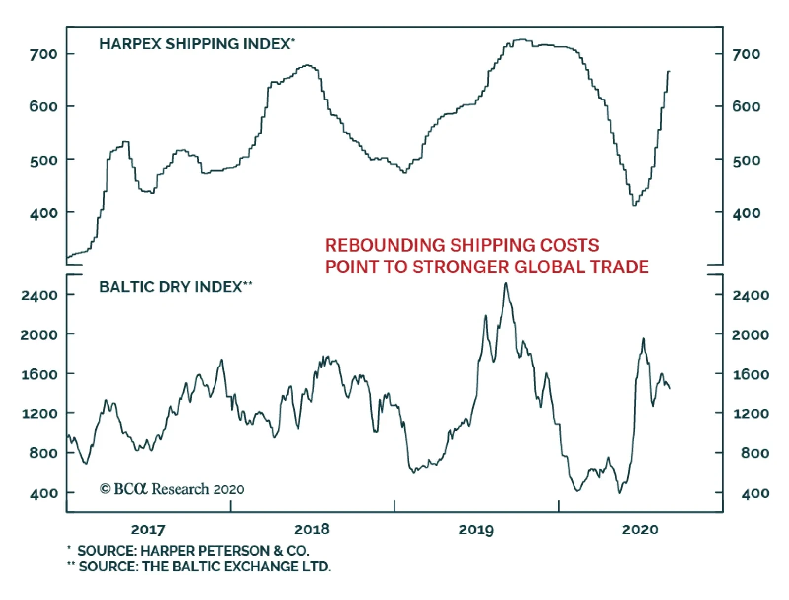 The sharp recovery in global shipping rates indicates that the recovery in the global trade cycle has legs. The Harpex Shipping Index, which measures the cost of chartering a container ship is now a stone-throw away from its…