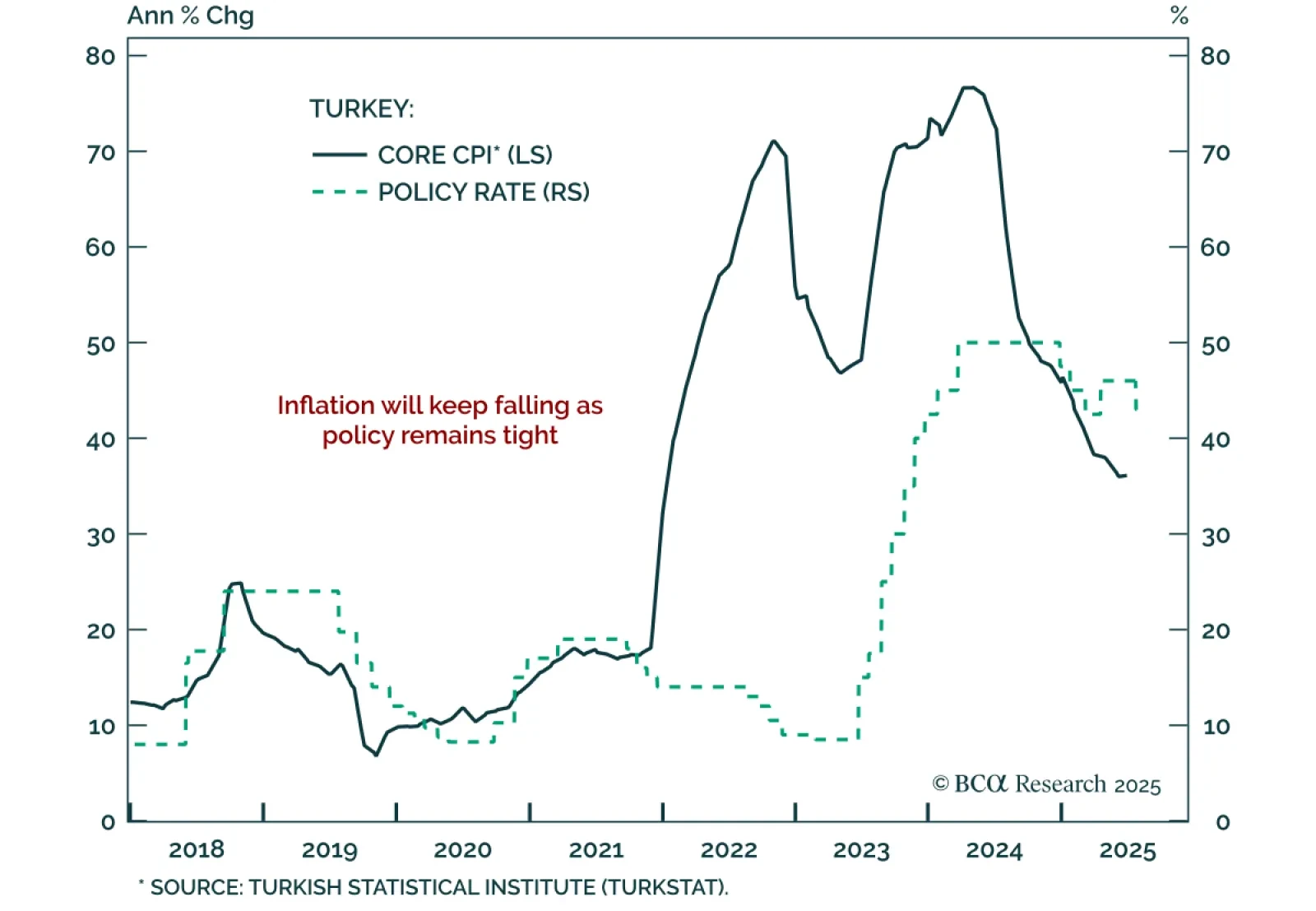 Turkey’s tight policy stance will weigh on growth and earnings, reinforcing our bearish view on Turkish equities. The central bank held rates at 46% and maintained a hawkish bias, consistent with efforts to bring inflation down from…