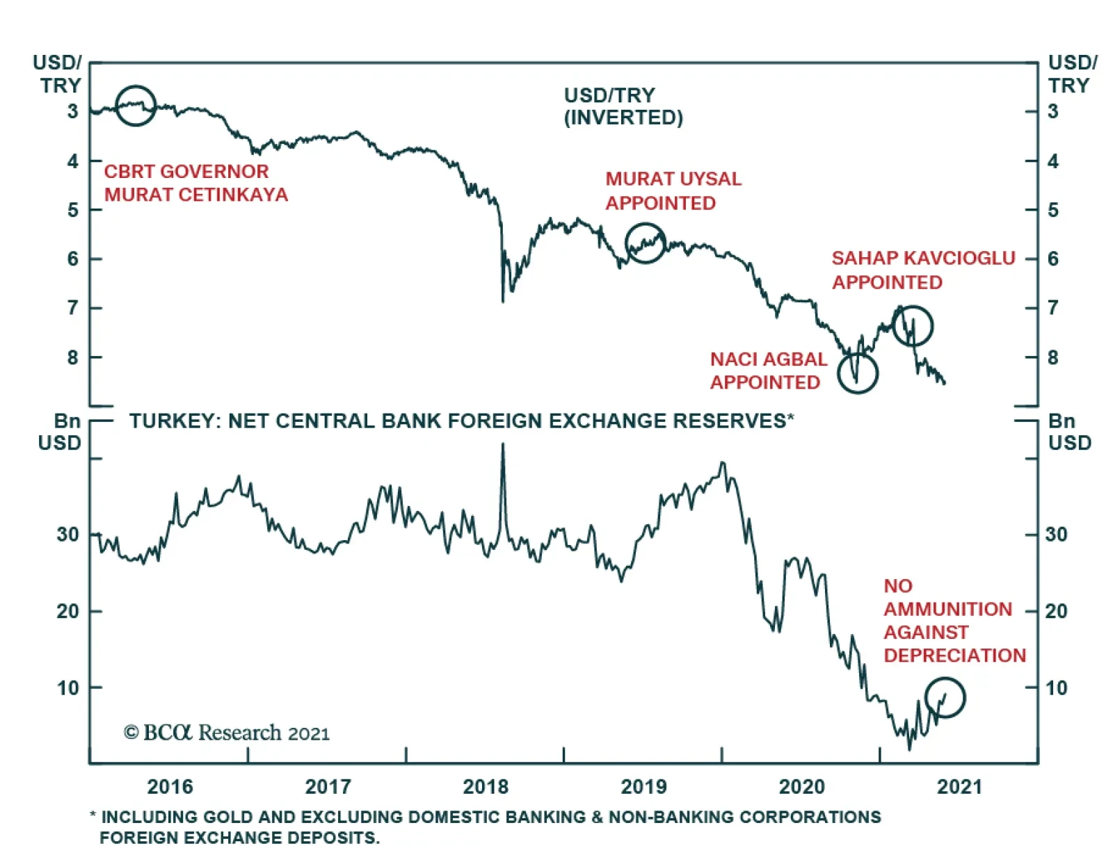 Chart 1Turkey: The Central Bank Is Providing Ample Liquidity To Commercial Banks Turkey’s unorthodox macroeconomic policies are backfiring again. The Turkish lira plunged 15% against the US dollar after the Central Bank…