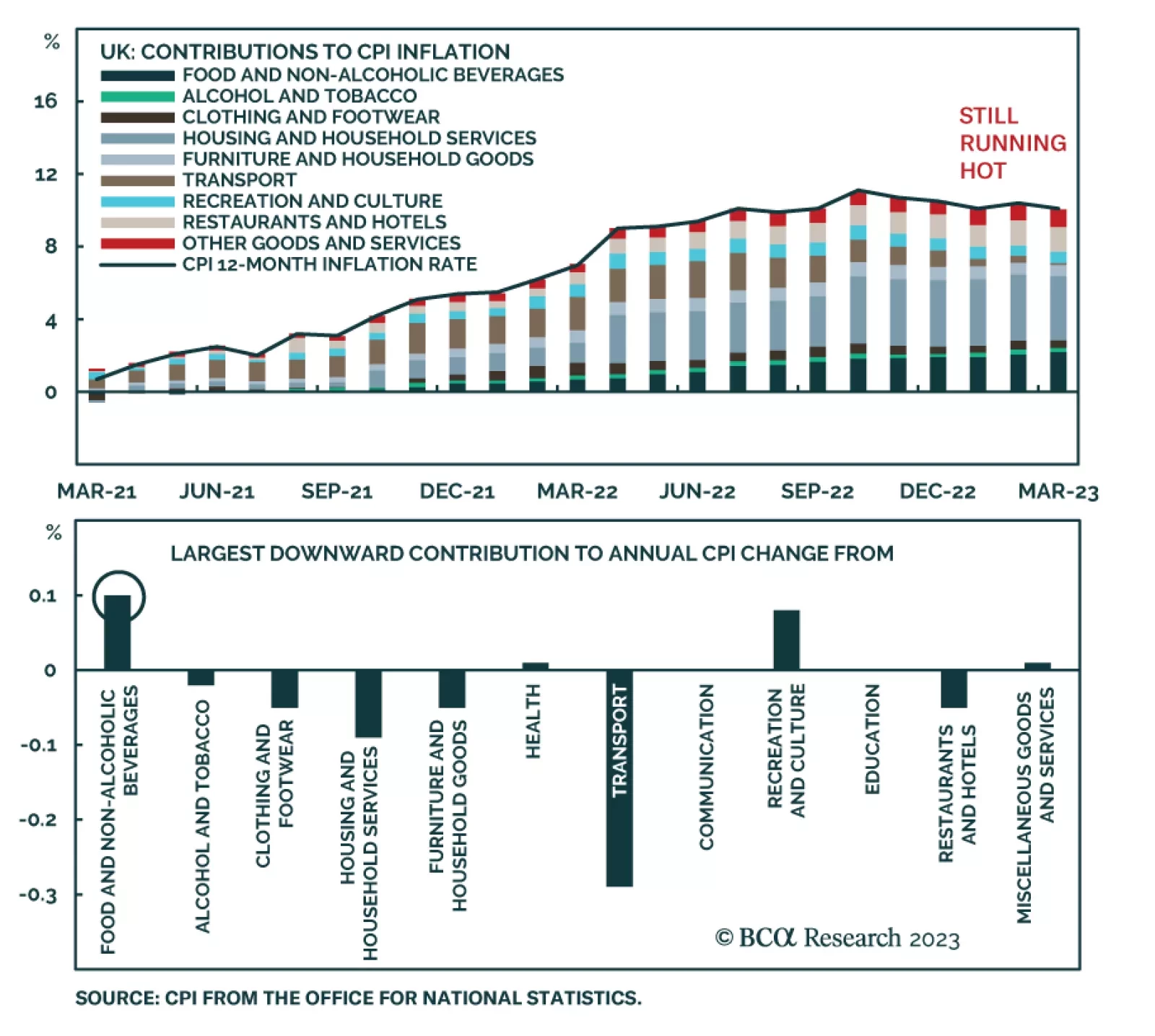 UK inflation came in hotter-than-anticipated in March. Headline inflation remained in double digits at 10.1% y/y, above expectations that it would recede from 10.4% y/y to 9.8% y/y. Similarly, the core index was unchanged at 6.2…