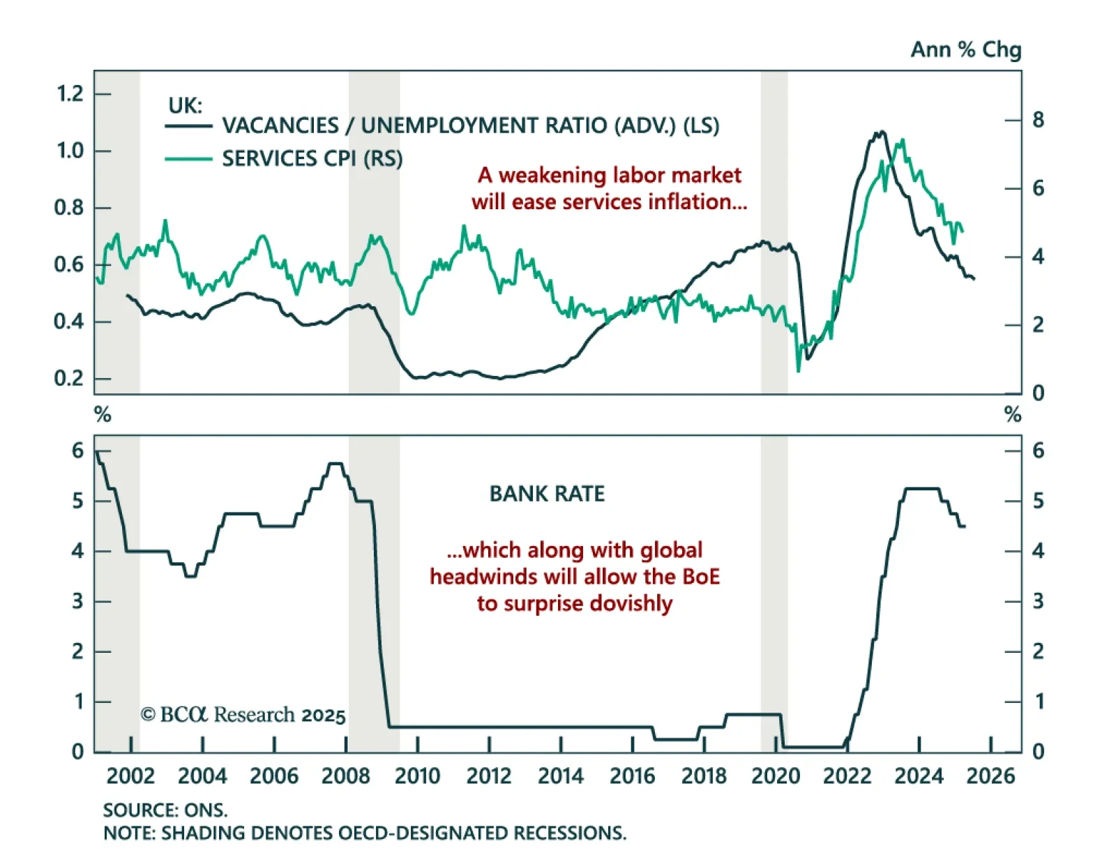 UK labor market weakness is reinforcing the case for BoE cuts and supporting our overweight in UK Gilts. April payrolls fell by 33k, marking a third consecutive monthly decline, while job vacancies remain below pre-COVID levels for…