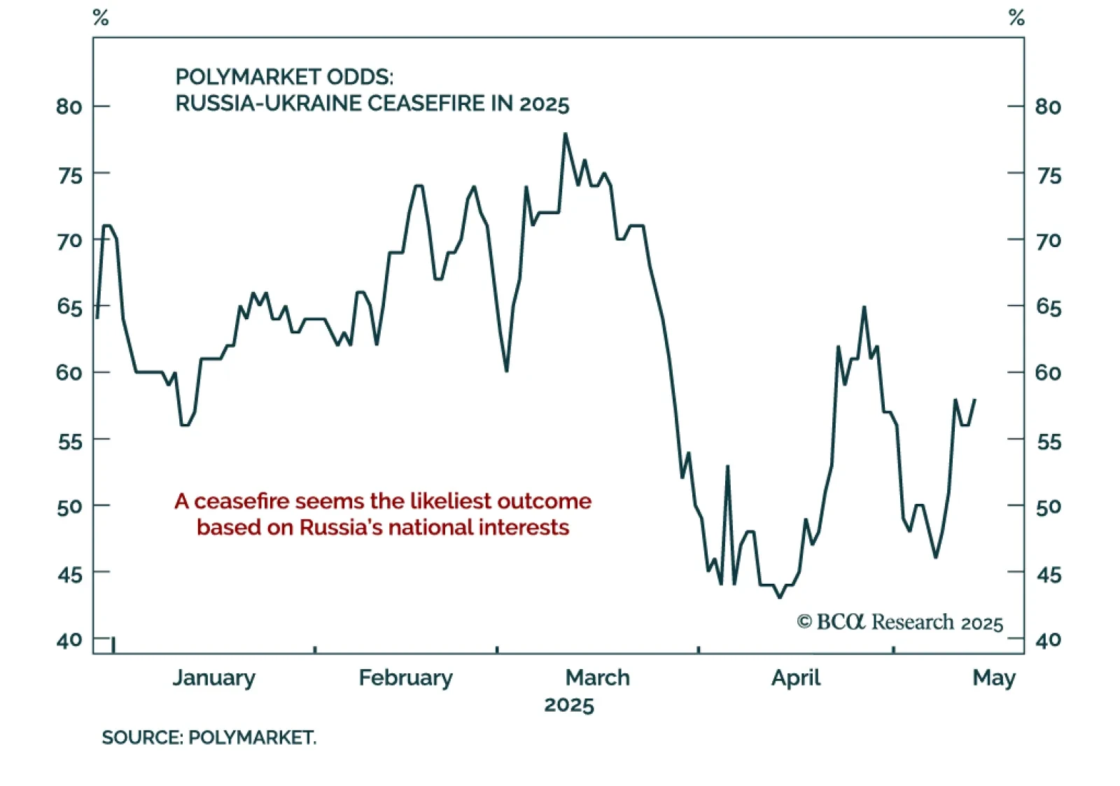 President Trump is negotiating a ceasefire in Ukraine. This will be a marginal headwind to some commodities which benefitted from the conflict like natural gas and wheat, and will be a marginal tailwind for European assets,…