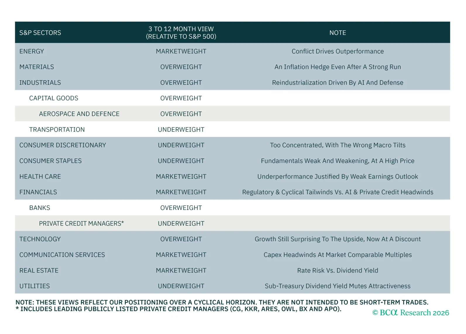 We continue to expect the S&P 500 to gain ground in 2026, driven by revenue growth, with limited scope for margin or multiple expansion. With cyclical upside tilted toward the investment side of the economy, we favor sectors with high-quality, revenue-driven earnings growth, leverage capex, and valuations that leave room for catch-up.