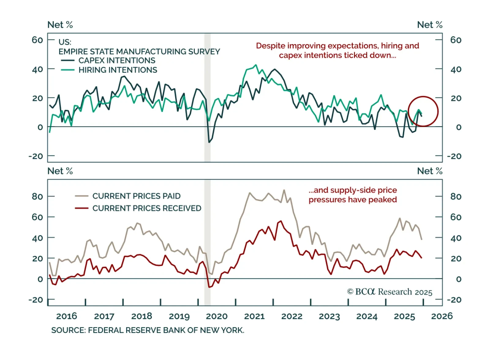 Maintain a modestly defensive stance as the Empire survey reinforces a picture of slow and fragile growth. The December Empire Manufacturing survey missed estimates, falling to -3.9 from 18.7 and implying a slight decline in activity…