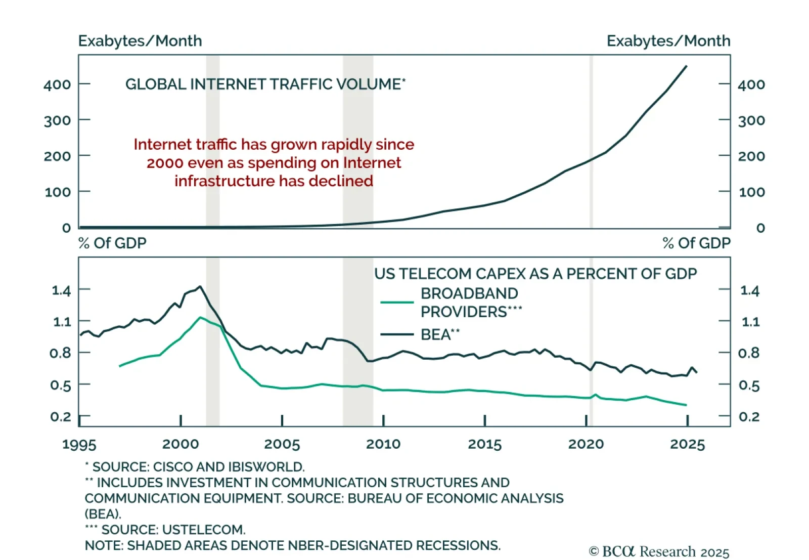 Our Global Investment strategists expect 2026 to mark the turning point from AI boom to bust, with their highest conviction trade (short QQQ / long TLT) positioned to capitalize. Internet infrastructure data offers a warning: Traffic…