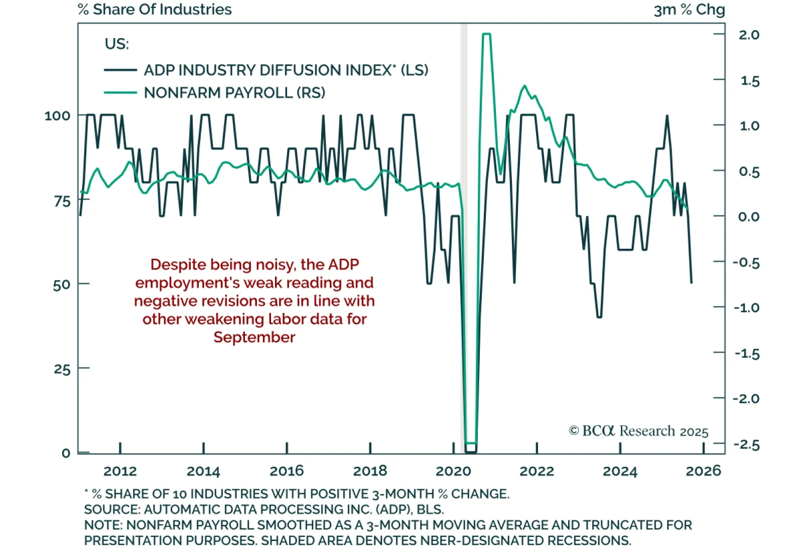 The September ADP report contracted by 32k jobs, missing expectations and extending the trend of weakening employment. August was revised lower to a 3k contraction, marking two consecutive months of decline after also contracting in…
