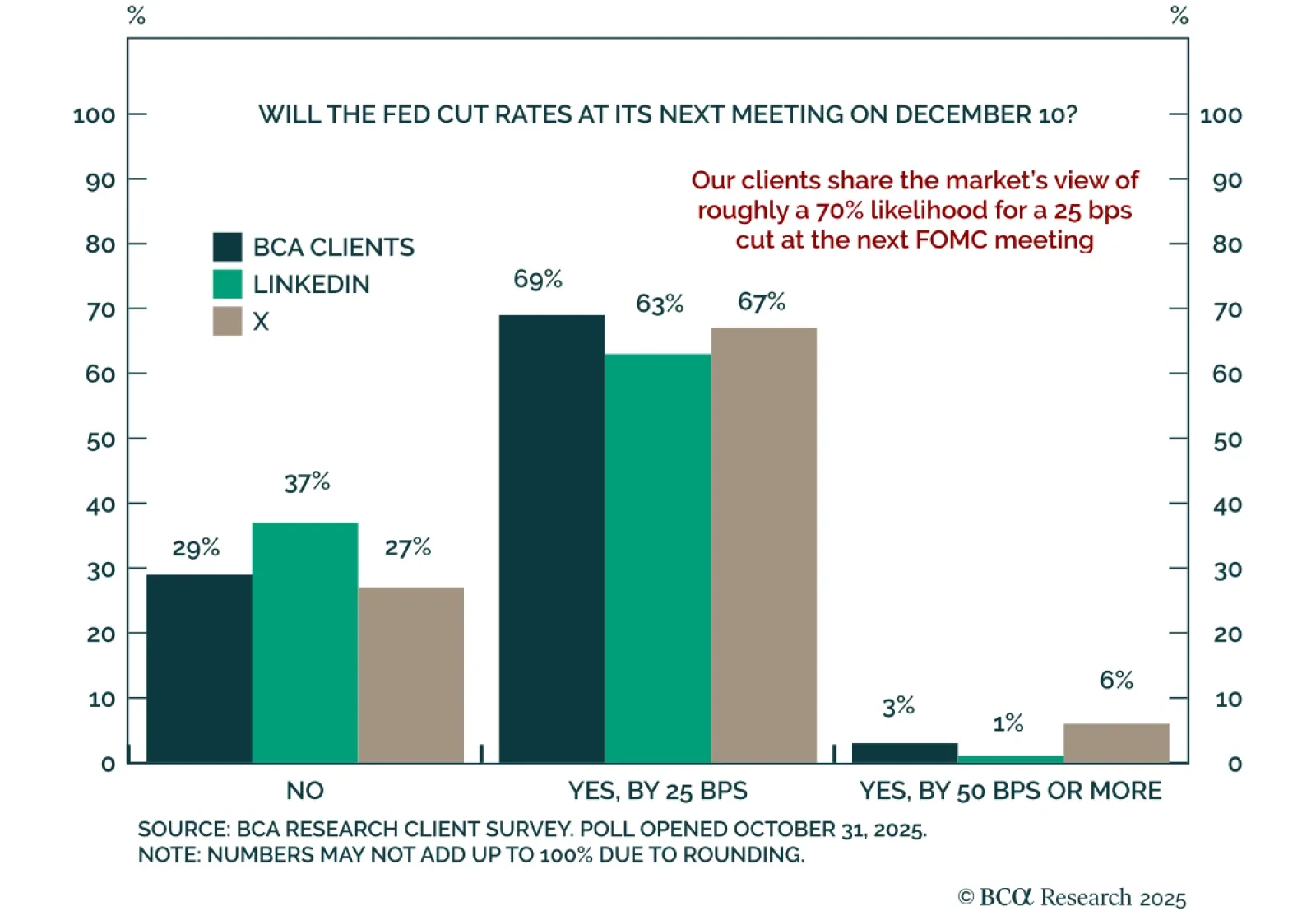 The FOMC meeting in mid-December remains live. The rates market is pricing in a 72% probability that the Fed will cut rates by 25 bps. In the latest weekly poll on the Have Your Say section of BCA's website, 69% of respondents agreed, but another 37% thought…