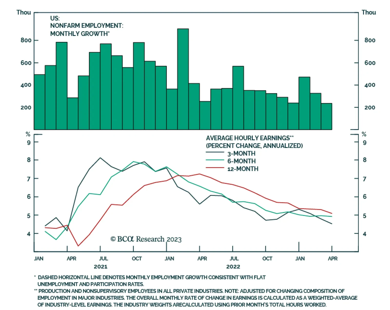 Through February and March, the number of US ‘job losers’ surged by almost half a million. Constituting the largest two-month increase in Americans who have lost their job since the depth of the pandemic. Unless we see a big drop in the number of job losers in the coming months, the correct investment strategy is still to position for a US recession that starts in 2023.