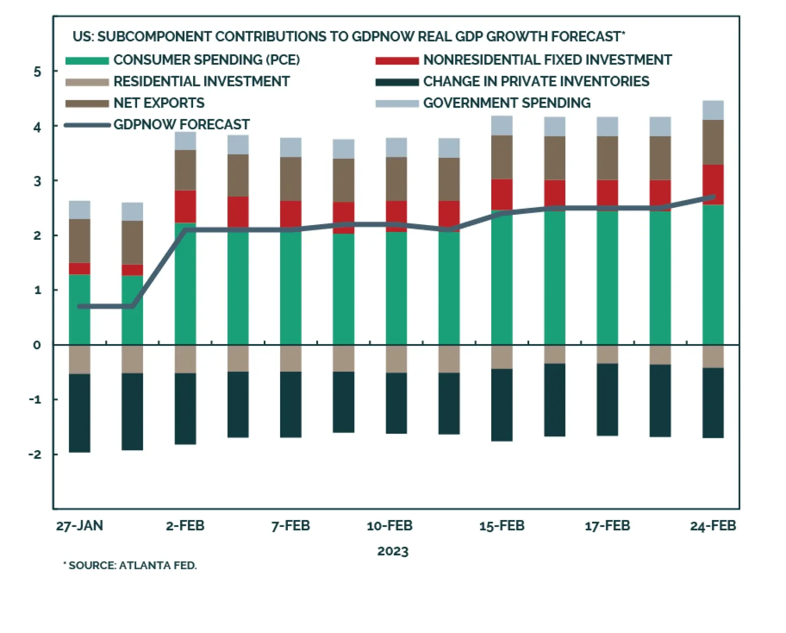 The latest reading from the Atlanta Fed’s GDPNow model estimates annualized US real GDP growth of 2.7% in Q1 2023. This is a significant improvement from its initial 0.7% estimate at the end of January. The latest upbeat reading reflects the consistent flow…