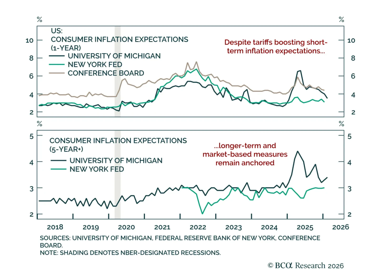 US inflation expectations remain well anchored, preserving policy flexibility as labor market risks stay elevated. The NY Fed’s January Survey of Consumer Expectations showed a decline in 1-year inflation expectations, while 3-year and 5-year expectations…