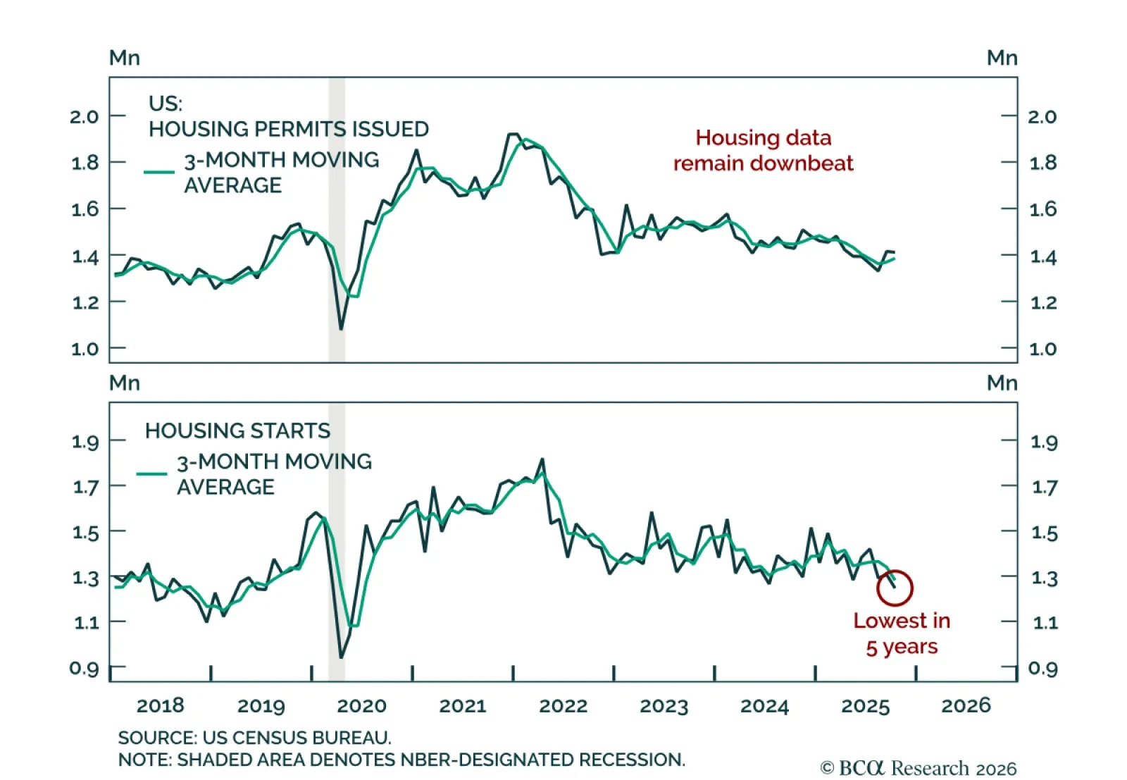The US residential real estate market remains soft. While the decline in mortgage rates is a positive, it is too early to bet on housing becoming the engine of growth for the US economy this year.