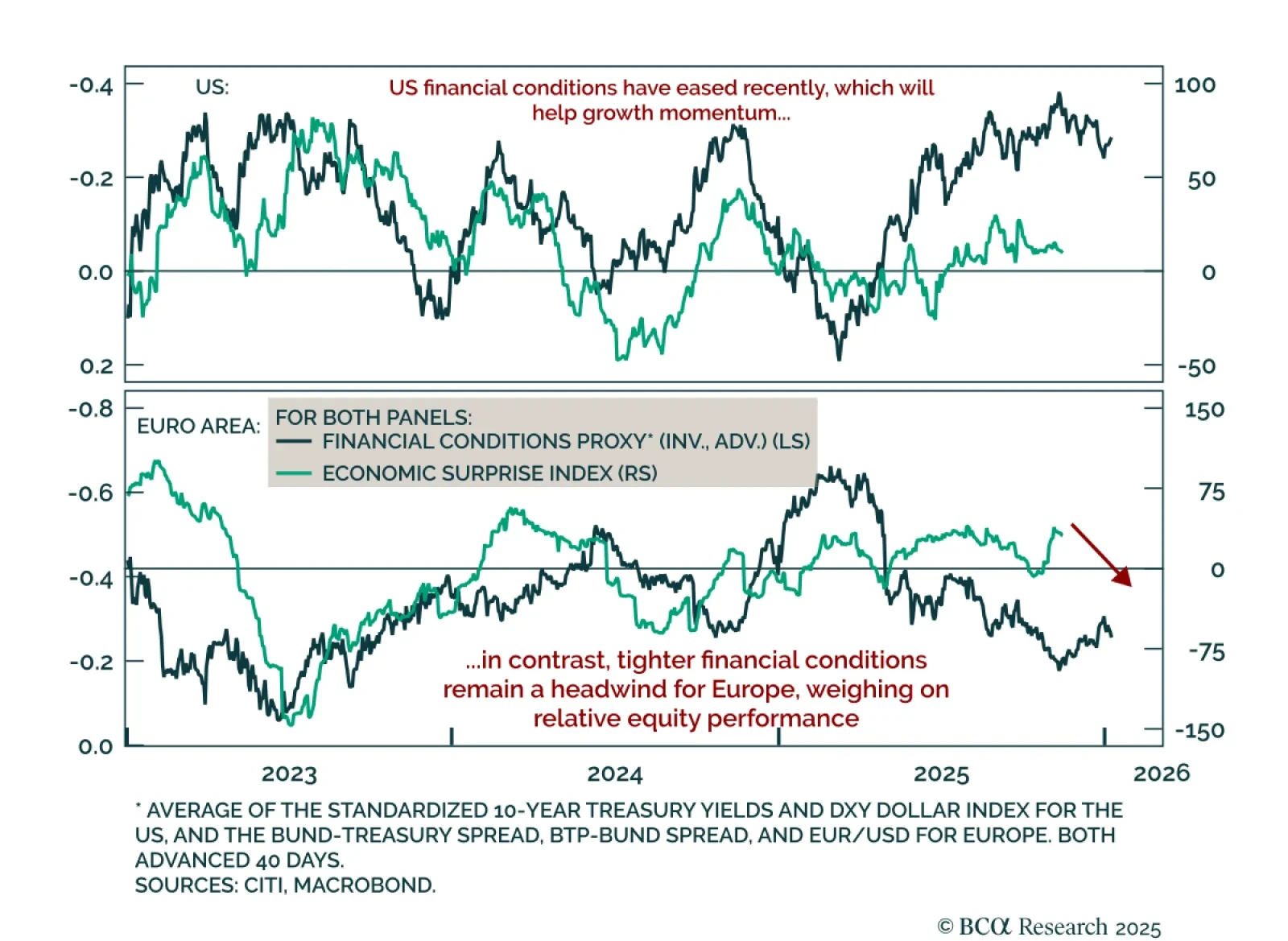 European sentiment remains mixed, with growth momentum failing to pick up despite brighter long-term prospects. Economic surprises have improved since mid-October, but tight financial conditions, driven by a strong euro and higher…