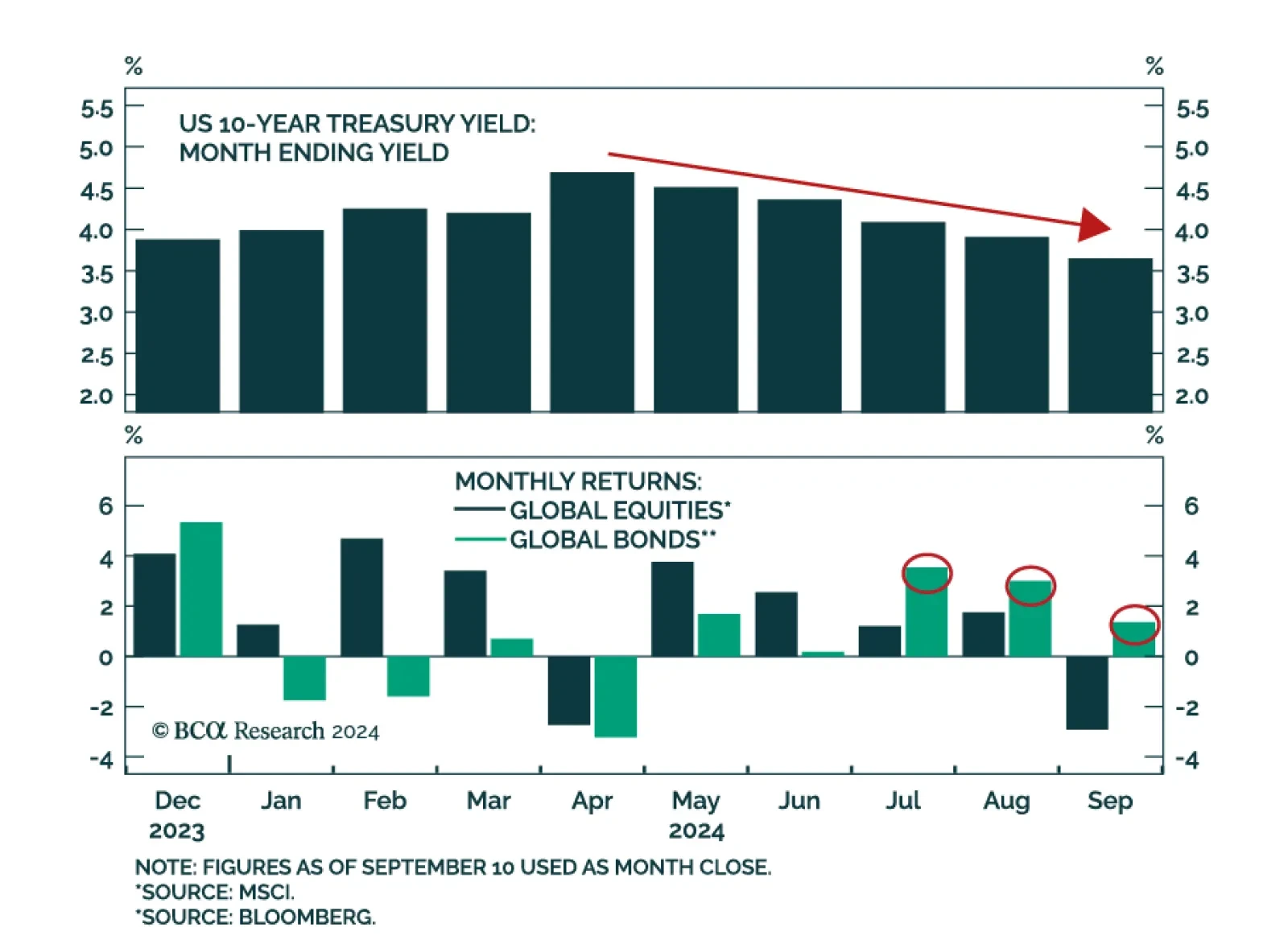 Despite global bond yields having trended lower since April, bonds have only started outperforming equities since July in US dollar terms. We expect this outperformance to persist going forward. Sentiment has largely driven…